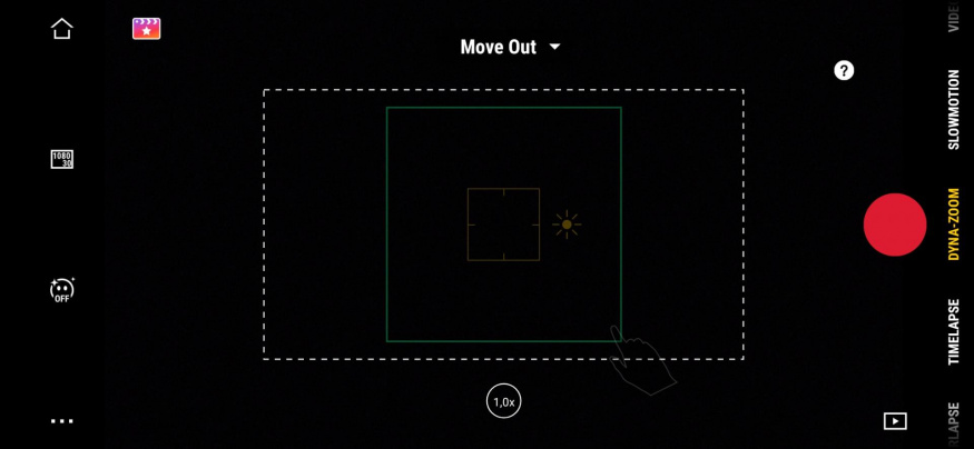 Další známou funkcí je Dyna-Zoom, která napodobuje filmový efekt známý jako Hitchcockův efekt (nebo dolly zoom). Jde o optickou iluzi, při níž snímaný objekt zůstává ve stejné velikosti, zatímco pozadí se dynamicky přibližuje nebo oddaluje – v závislosti na zvoleném režimu.