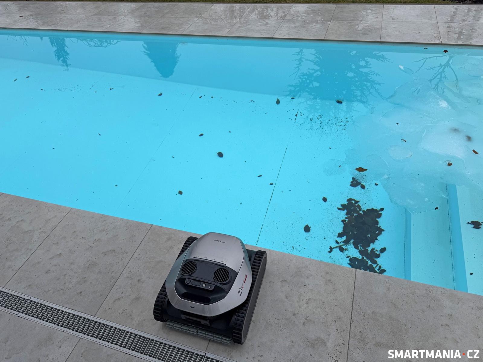 Model Dreame Z1 dokáže spolehlivě zautomatizovat proces čištění bazénu bez nutnosti připojení k filtračnímu systému nebo elektrické síti. Na baterii vydrží pracovat dostatečně dlouho, aby zvládl i větší domácí bazény, a díky chytré navigaci si najde cestu téměř ke každému znečištěnému místu. Tady ale samozřejmě hodně záleží na konstrukci a tvaru bazénu.