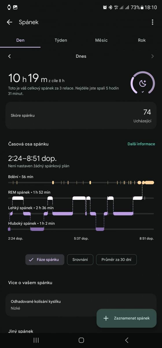 O zobrazení výsledků se pak stará trojice aplikací. O připojení se stará Watch, o zobrazení cvičení Fitbit s půlročním prémiovým přístupem v ceně, kterou si můžete dál propojit s Health Connect. Zejména Fitbit vás může až zahltit statistikami. Už jen základní denní přehled obsahuje výsledné kroky, naspané hodiny, cvičení, spálenou energii, ale i vypitou vodu nebo přijaté potraviny, pokud si je budete zaznamenávat.