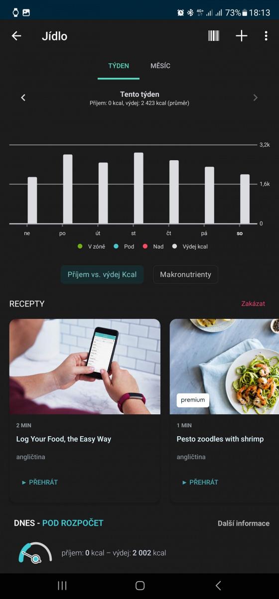 Každá z těchto sekcí pak nabízí související obsah podle tématu. Můžete si projít návod, jak se kterou sekcí začít, ale u potravin pak čekají recepty na vaření, u tělesné hmotnosti si můžete vést deníček, u srdečního monitoringu lze zapnout upozornění na nepravidelný srdeční rytmus či extrémní hodnoty, u nachozených kilometrů si zase můžete zjistit, které měsíce jste seděli za pecí a kdy jste prošlapali podrážky. Snad jen sekce týkající mindfulness a stresu mi přišly poněkud jalové, ale za to asi hodinky nemůžou.
