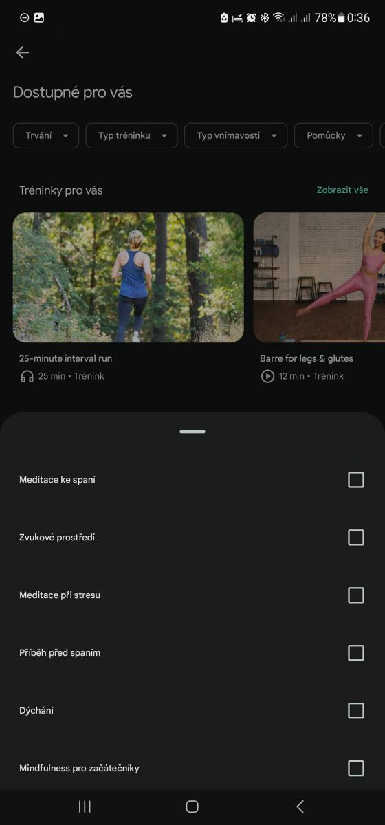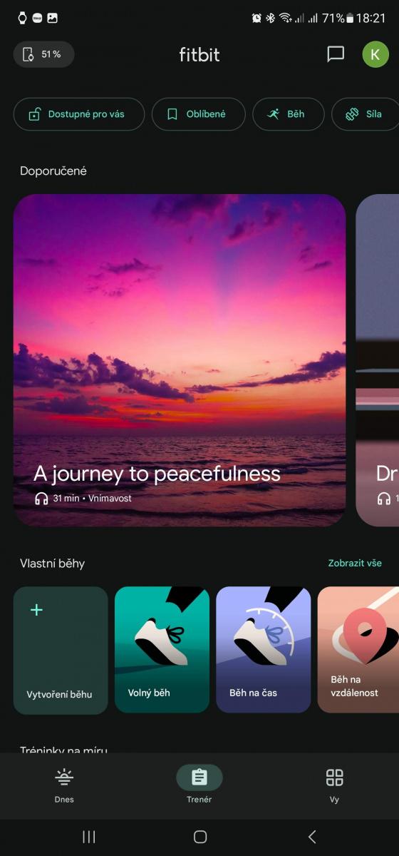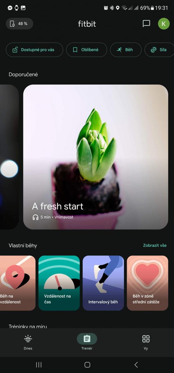Samostatnou sekcí je pak trenér, který nabízí hromady videotréninků na posilování, strečink, kardio, jógu a jiné aktivity, přičemž umožňuje brát v potaz i to, jestli chcete cvičit vsedě, nebo jste upoutaní na invalidní vozík. Tu komplexitu oceňuji, na druhou stranu jako cyklista jsem zase ostrouhal – většina nabídek se točí okolo běhu a cvičení a nejblíž k opírání se do pedálů má u Fitbitu rotoped.