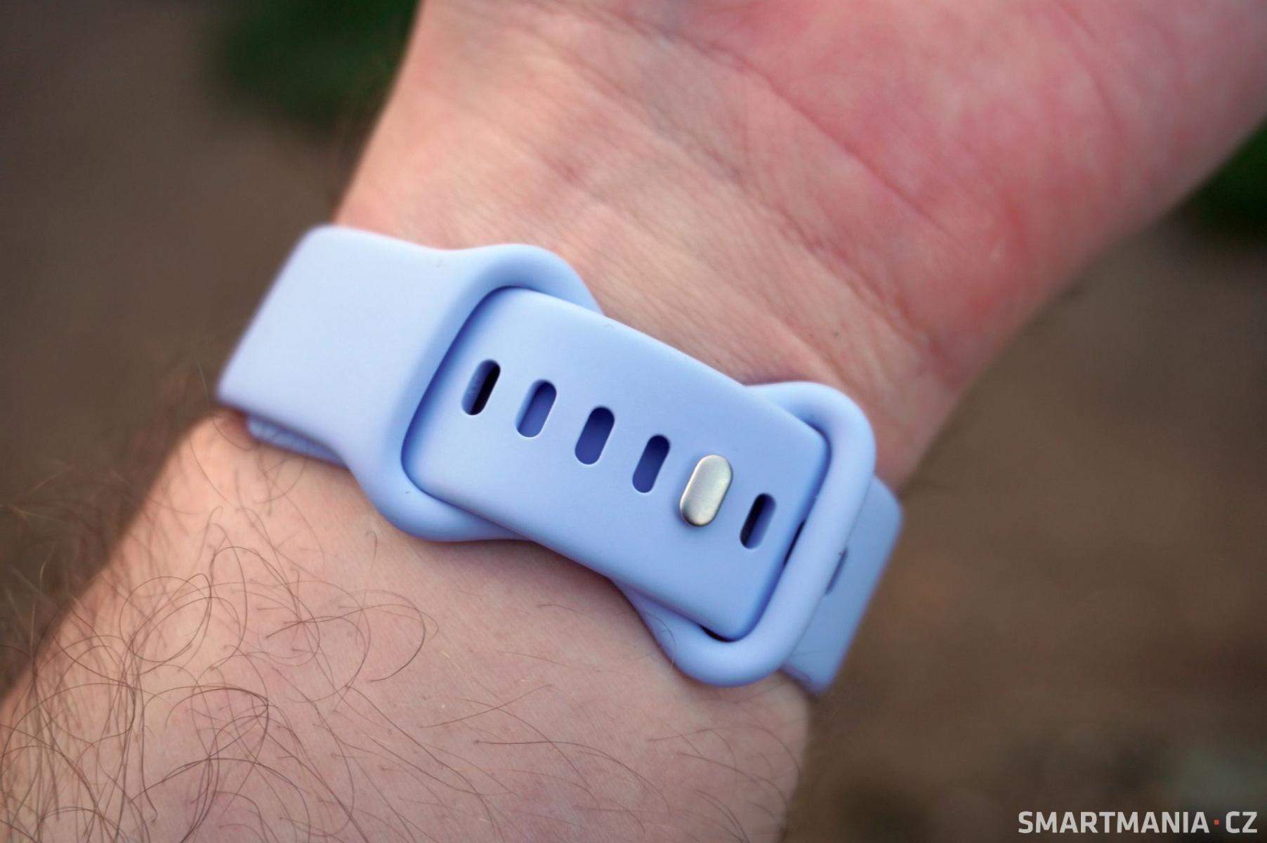 Těch prvků je požehnaně, ale vůbec vám to nepřijde. Korunka ladí materiálem i tvarem a imituje klasické hodinky. Mikrofon je namířený víc na ruku než ven, takže se ve většině případů schová ve stínu. Ovládací tlačítko, kterým se otevírají poslední spuštěné aplikace vystupuje nad povrch jen minimálně a spoléhá spíš na vyšší odpor a zřetelné promáčknutí, než jemnost. Vidět je ale sotva.