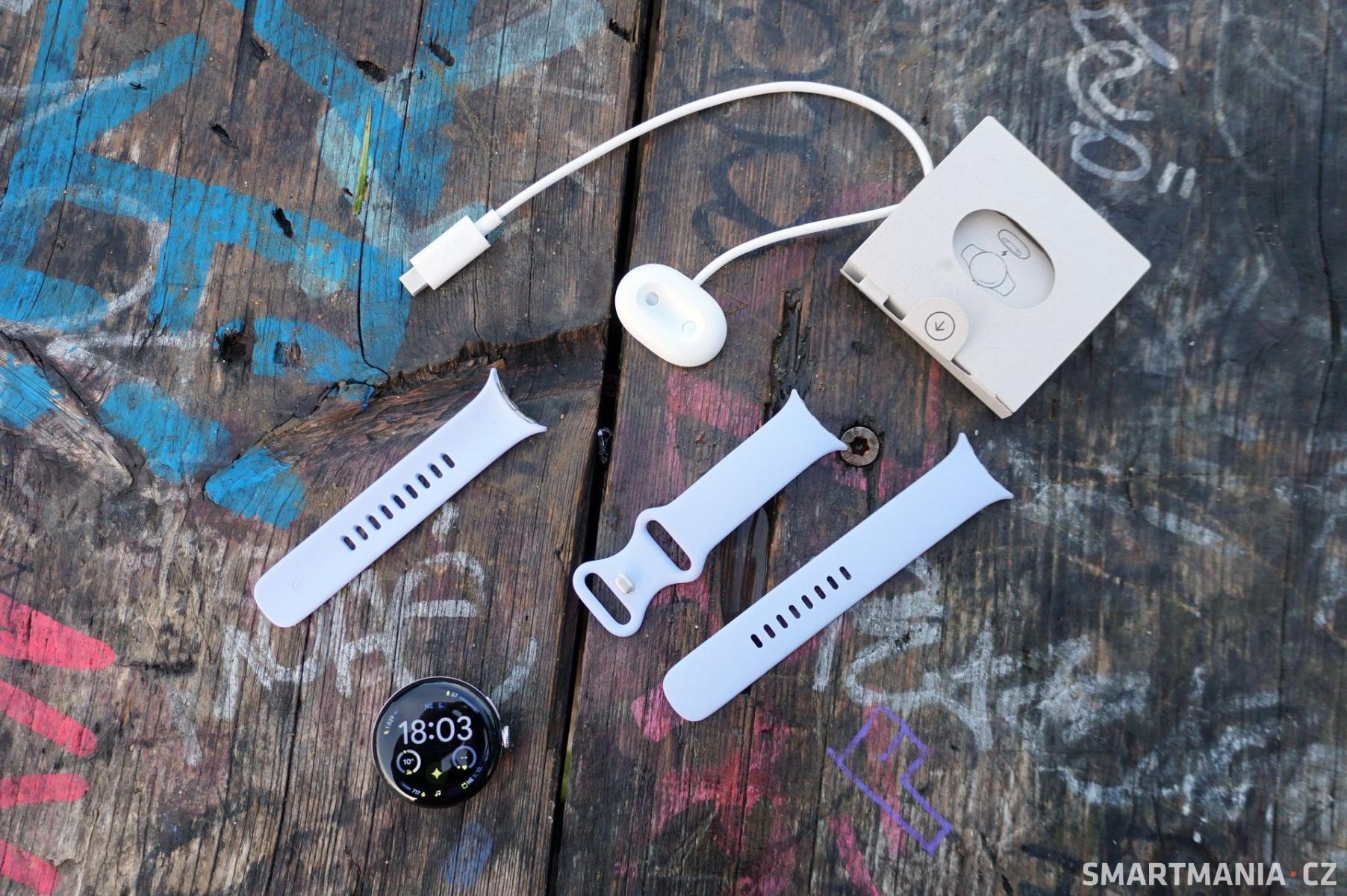 Kdybych koukal na krabičku od Google Pixel Watch 4 jen jako kontejner na součástky, byl bych spokojený. Vybalíte si hodinky, dokovací stanici s USB-C kabelem a dvě velikosti řemínku – co byste mohli chtít víc?