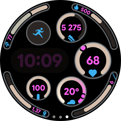 V tomto ohledu Pixel Watch 4 razí trošku jiný směr pohotovostních obrazovek, než konkurenční Samsung Galaxy Watch se stejným systémem. Samsung vsadil na modifikovatelné ciferníky, kde každý element může měnit formu zobrazení od jednoduché číselné ukazatele po grafy, a k tomu nabízí možnost každý z těchto prvků nabarvit podle přání. Google pojal svůj systém úsporněji. Každý ciferník může mít několik variant, kterým upravujete celkovou barevnou paletu. Jednotlivé komplikace jde sice taky měnit, ale nesáhnete do pozadí ciferníku.