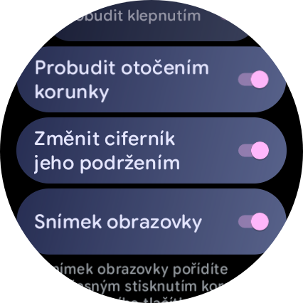Prostředí jednosměrnému pohybu nahrává. Základní ciferník a widgety seřazené na obrazovkách po stranách sice procházíte swipem, ale k notifikacím a přepínačům už přistupujete vzhůru a dolů. Korunka sice neumožňuje cvakáním krokovat, ale haptická odezva vám dá najevo, že jste došli na konec seznamu.