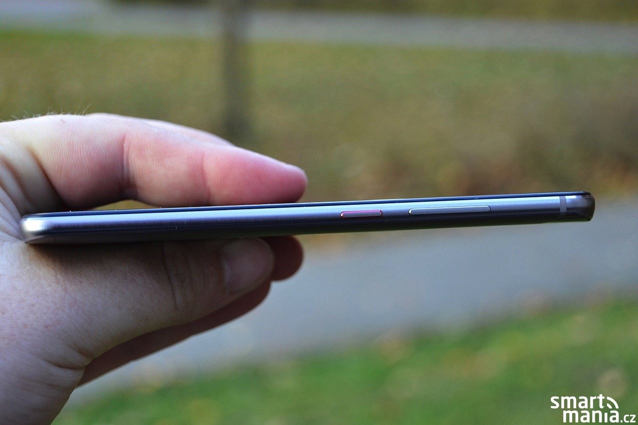 Na pravém boku sídlí tlačítko Power, které je červeně lemováno. Nad ním je umístěna kolébka pro ovládání hlasitosti. Opačný bok je domovem kombinovaného slotu pro karty nanoSIM (2x), případně microSD. Datový konektor je umístěný na spodní hraně telefonu. Huawei vsadil na port USB-C, což rozhodně chválíme. Hlavní reproduktor je ukrytý pod mřížkou napravo od datového konektoru, na horní hraně je k dispozici 3,5mm jack.