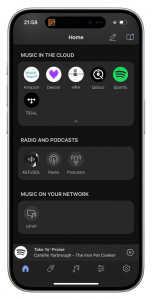 Ačkoliv k dispozici je aplikace KEF Connect pro iOS i Android, reálně ji příliš potřebovat nebudete. Na domovské obrazovce najdete přepínač jednotlivých vstupů, ať už chcete přehrávat hudbu přes Wi-Fi, Bluetooth, optiku, USB, nebo z televize. Dále se nabízí cloudové a streamovací služby nebo rádia a podcasty. V této sekci najdete také UPnP protokol.