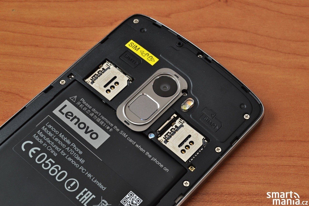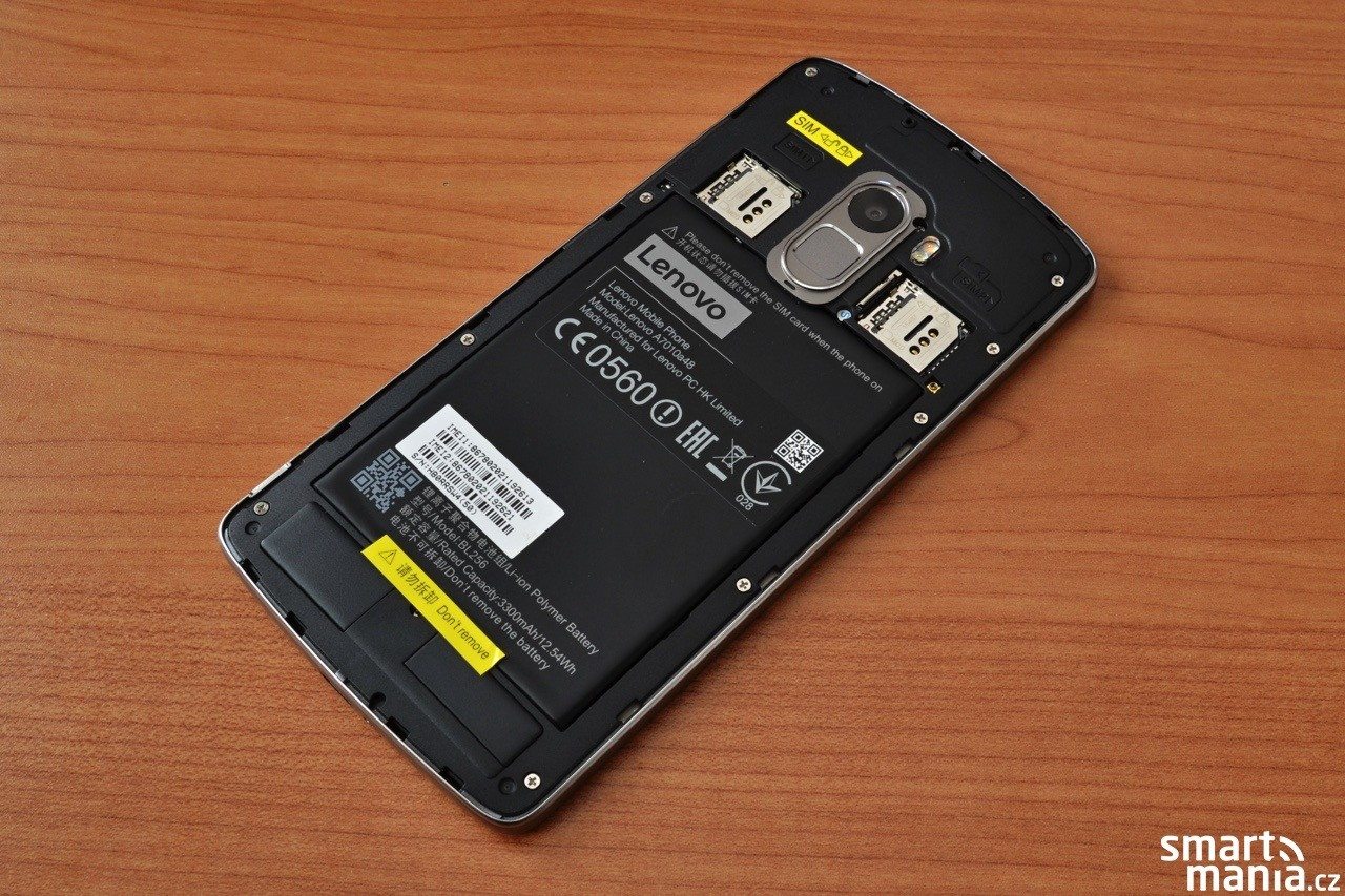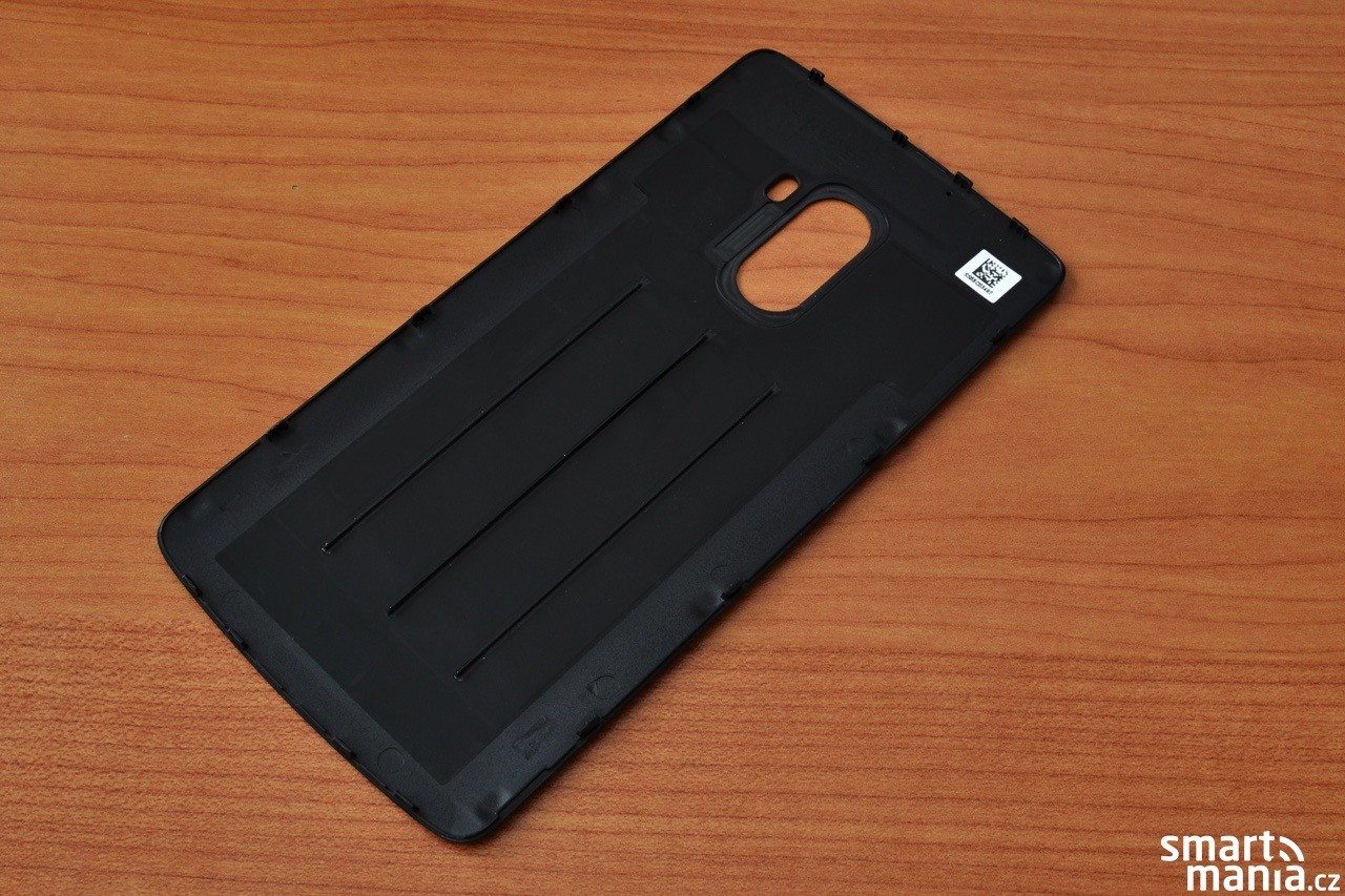Zadní kryt je odnímatelný a ukrývá se pod ním akumulátor s kapacitou 3300 mAh. Kromě toho zde najdete i dva sloty na karty micro SIM, z nichž jeden je možné využít jako slot na paměťovou kartu formátu micro SD. Povrchová úprava zad je velmi příjemná na dotek. Jedinou vadou na kráse je poměrně snadné zanechávání tisků prstů.
