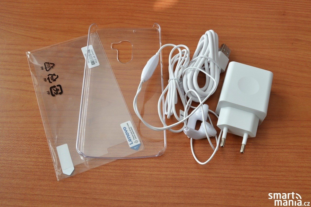 Jak je u Lenova dobrým zvykem, je obsah balení poměrně bohatý. Kromě samotného telefonu totiž dostanete i ochrannou fólii na displej a zadní kryt vyrobený z průhledného plastu. Nechybí samozřejmě ani tradiční příslušenství jako uživatelské příručky či napájecí adaptér s odpojitelným kabelem microUSB. Dodávaný adaptér nabízí maximální výstupní proud 2 A.
