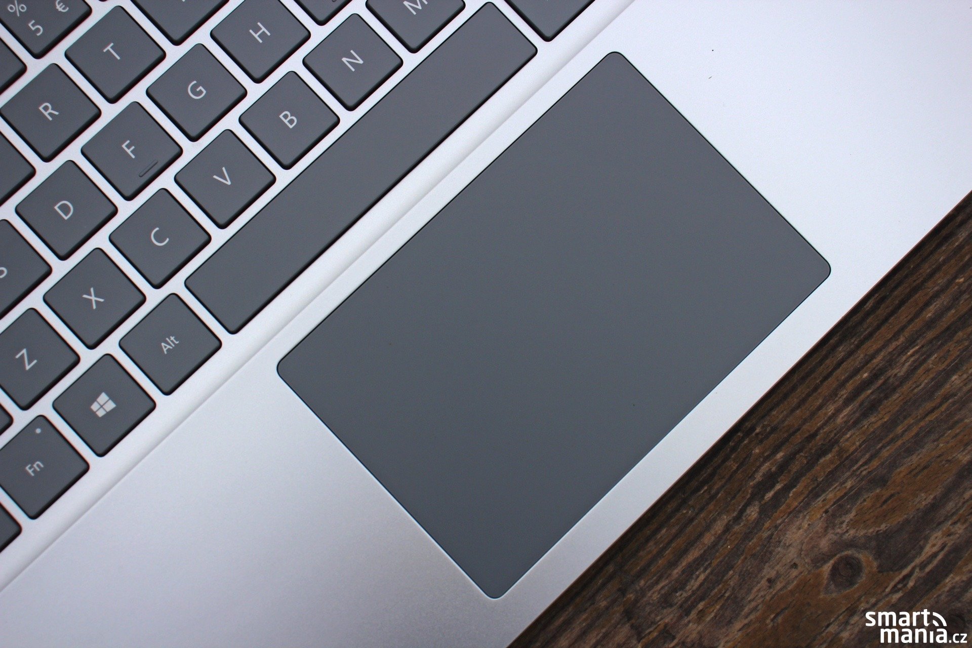 Pod klávesnicí najdete touchpad, jehož skleněný povrch je znatelně kluzčí než u ostatních počítačů Surface. Touchpad je velmi přesný a pohodlně se ovládá jak jedním, tak více prsty. V nastavení Windows si můžete nastavit rozličná gesta, např. ovládání hlasitosti tažením čtyřmi prsty nahoru/dolů. Touchpad je po celé ploše klikatelný a jeho velikost považuji za dostatečnou.