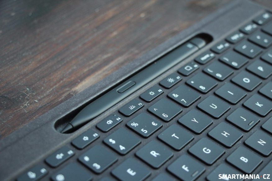 Jednotlivé klávesy jsou rovnoměrně podsvícené, úroveň podsvícení lze regulovat ve třech krocích (čtvrtý znamená vypnuto). Pokud často budete používat klávesnici oddělenou od tabletu, připravte se na to, že intenzita podsvícení má přímý dopad na výdrž baterie.