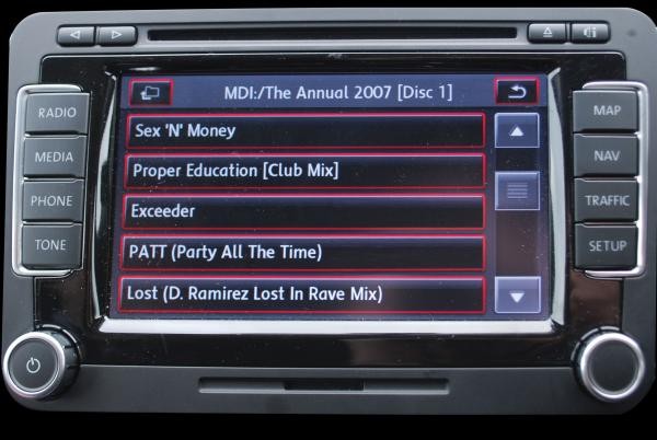 Při streamování z YouTube se dokonce objevilo jméno autora. Procházení hudby na Flash disku či iPodu připojeném přes kabel bylo možné přes dotykovou obrazovku a tlačítka na volantu. Názvy skladeb včetně telefonních kontaktů se pak ukazovaly také na displeji palubního počítače.