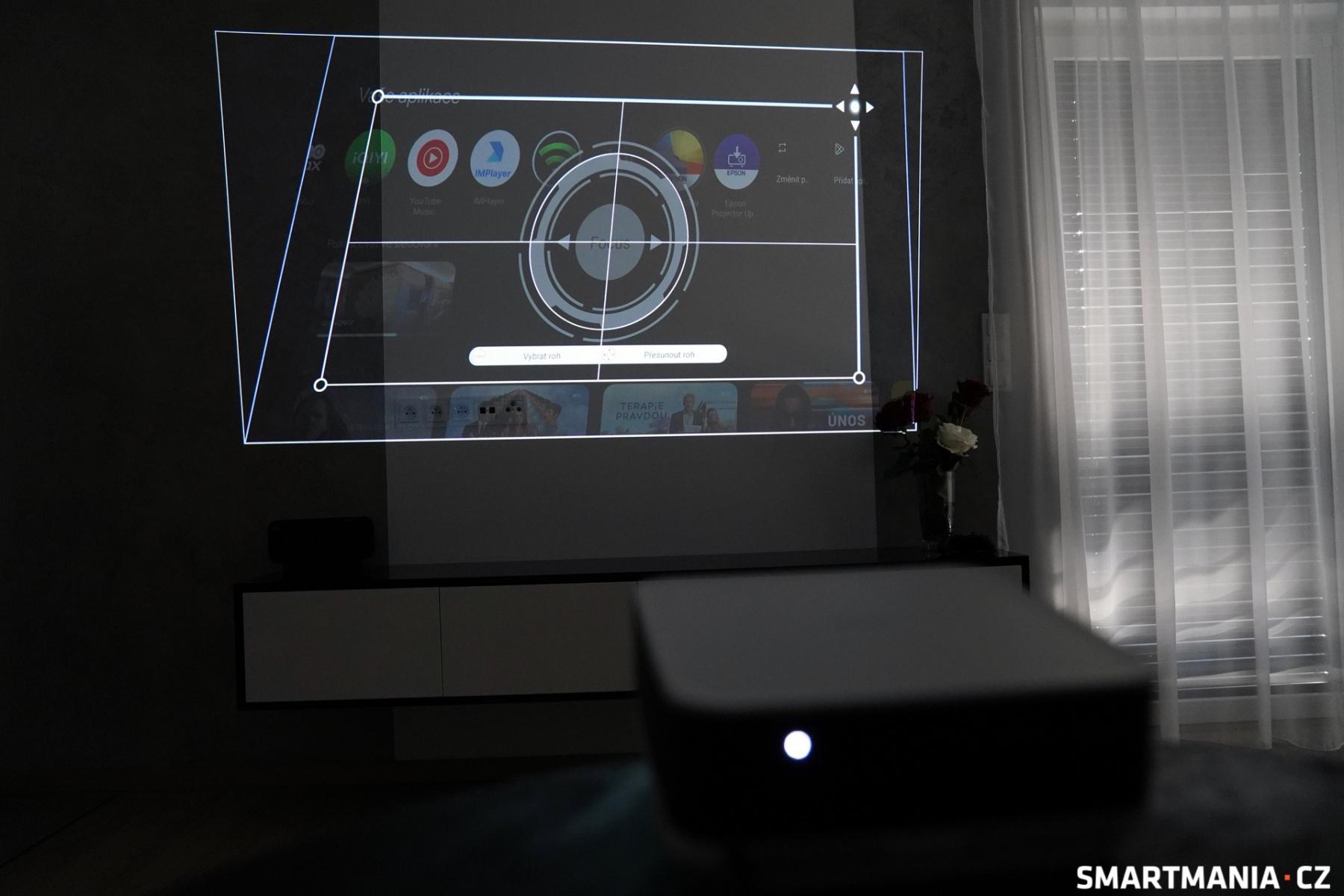 Kromě plné automatiky, která zahrnuje například také funkci automatického vyhýbání překážkám a funguje opravdu dobře, si můžete s nastavením obrazu pohrát i manuálně. V nastavení lze využít manuální ostření, ruční přizpůsobení ploše a neschází ani funkce Quick Corner, která umožňuje posunutí každého ze čtyř rohů obrazu samostatně, abyste dosáhli dokonalé roviny.