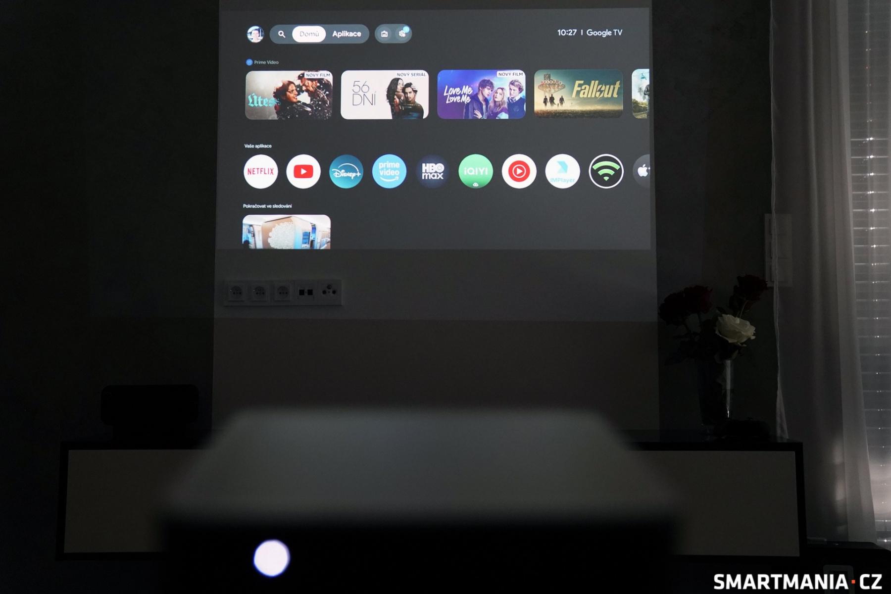 Stačí zapojit kabel, v seznamu Vstupy přepnout z Google TV na HDMI a máte hotovo. Na zádech projektoru se nachází také USB–A konektor, ale pokud už se těšíte na přehrávání videí z flashdisku, bohužel vás zklamu. Tento port je zde pouze pro servisní účely a jako vstup pro přehrávání médií jej nelze využít. Přes Google Cast pak můžete v projektoru sdílet obraz z telefonu či tabletu.