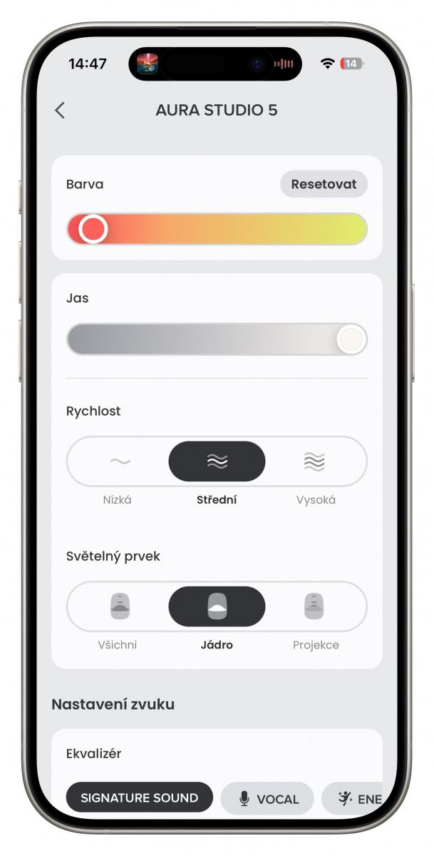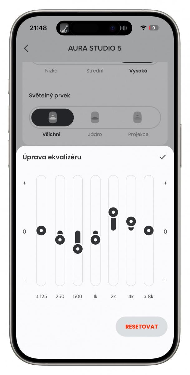 Je zde možné vstoupit také do ekvalizéru, který nabízí přednastavené profily ale i detailní přizpůsobení pomocí sedmi posuvníků. Dále se zde nabízí také párování s dalším reproduktorem. Aplikace je plně lokalizovaná do češtiny, orientaci tedy neztratíte ani bez znalosti cizích jazyků.