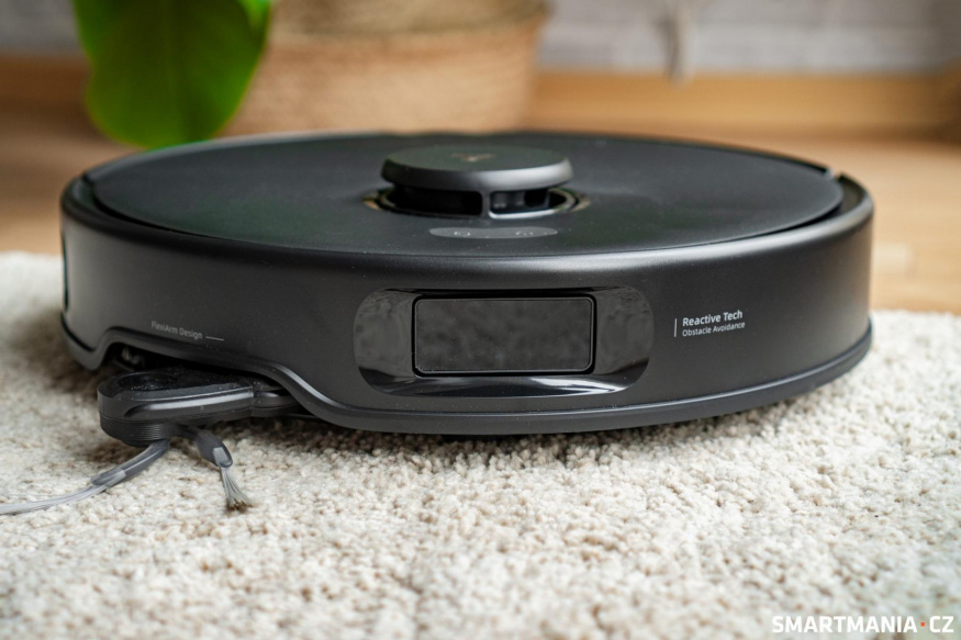 Na horní části vysavače se nachází vyvýšený senzorový modul s LiDAR technologií, který slouží k přesnému mapování prostoru pomocí laserového paprsku. Toto je klíčová výhoda pro navigaci, která bývá často omezující kvůli výšce vysavače, ale jak už jsme si řekli, i tak se robot dokázal dostat pod 10 centimetrů, takže klobouk dolu. Pokud je tedy pro vás úklid pod gaučem prioritou, může být tento model jedním z ideálních kandidátů.