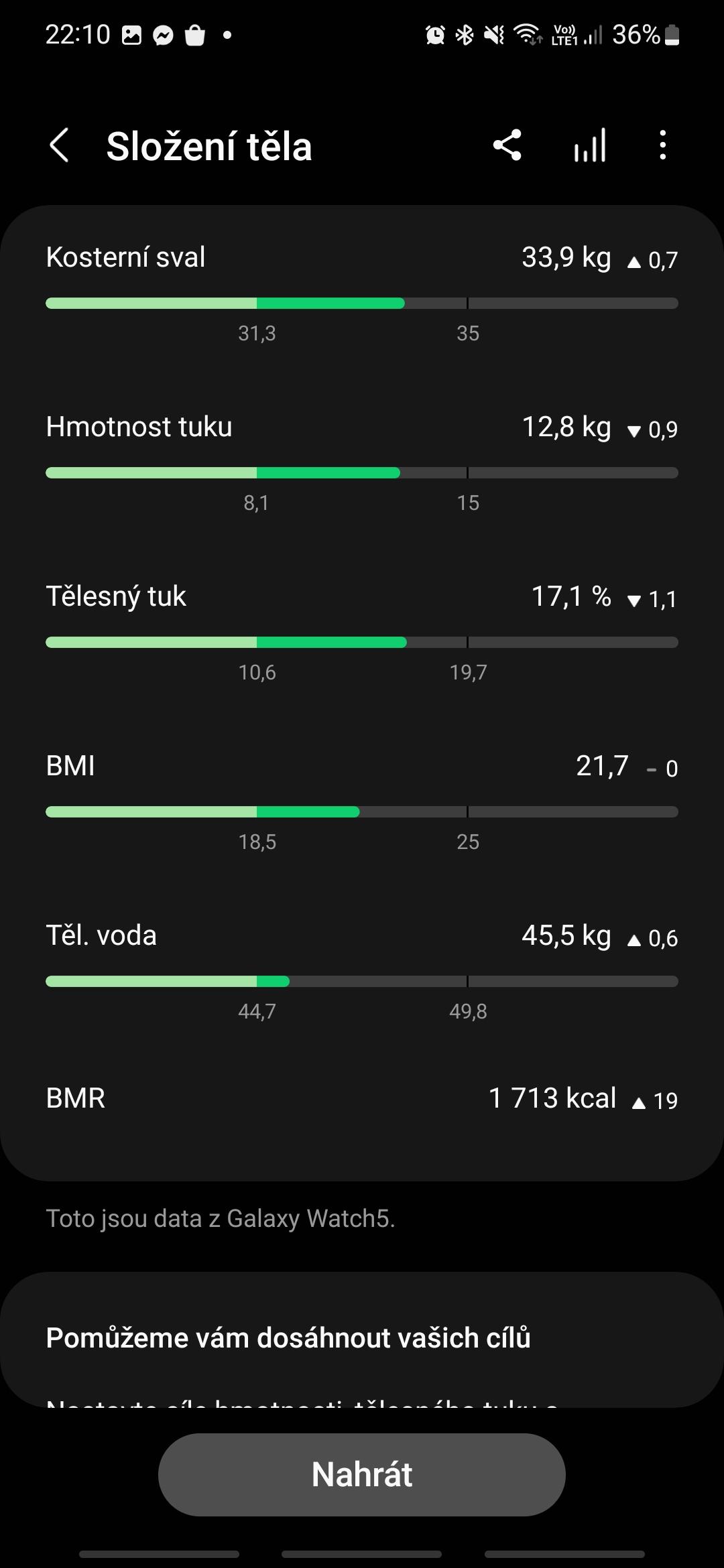 Stačí položit prostředníček na horní tlačítko a prsteníček na spodní a senzor změří všechny potřebné údaje. Samsung v této oblasti slibuje 98% přesnost. Galaxy Watch 5 rovněž umí monitorovat, jak moc se při sportovních aktivitách potíte a jak dlouho trvá, než se vaše tělo zregeneruje.