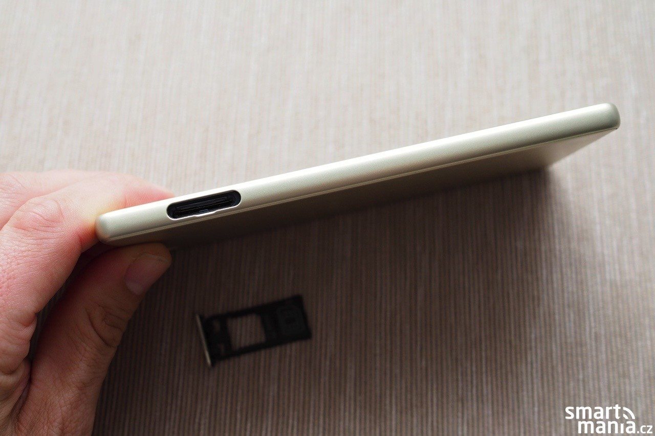 Pravý bok naopak obsahuje zapínací tlačítko, které je kombinováno se čtečkou otisků prstů, hardwarovou spoušť fotoaparátu a kolébkou hlasitosti. Horní hrana nese zdířku pro 3,5mm jack sluchátek a sekundární mikrofon, spodní naopak hostí běžný microUSB konektor a hlavní mikrofon. Na zádech, která jsou vyrobená z hliníku, nalezneme čočku fotoaparátu a LED přisvícení. Přední strana, překrytá kompletně 2,5D krycím sklem, nese kromě displeje dva stereo reproduktory, notifikační diodu schovanou v horním reproduktoru, čočku fotoaparátu a senzor přiblížení se senzorem světla.
