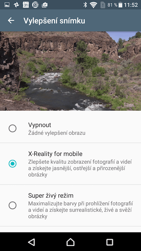 V čem Sony displej oproti předchozím generacím vylepšilo, je čitelnost na přímém slunečním světle. Displej umí být výrazně jasnější a neměl jsem s čitelností problém vlastně v žádných podmínkách. Naopak, jas v absolutní tmě je opravdu minimální a mobil se velmi příjemně používá. Barevné podání IPS displeje je příjemné, pozorovací úhly skvělé. Pokud někomu nebude vyhovovat barevné podání, lze si manuálně upravit bílou barvu i hodnoty RGB.