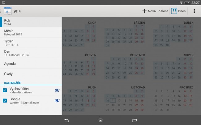 Vestavěný kalendář nabídne několik možností přehledu událostí, konkrétně po roce, měsíci, týdnu, dnu a poté ještě agendu událostí. Zadávat můžete buď jednoduché úkoly, u nichž lze mimo název a popis přidat pouze připomenutí, nebo standardní události, kde nechybí vícero podrobností a v neposlední řadě také opakování či několik připomenutí. Synchronizace s Google účtem je pak samozřejmostí.