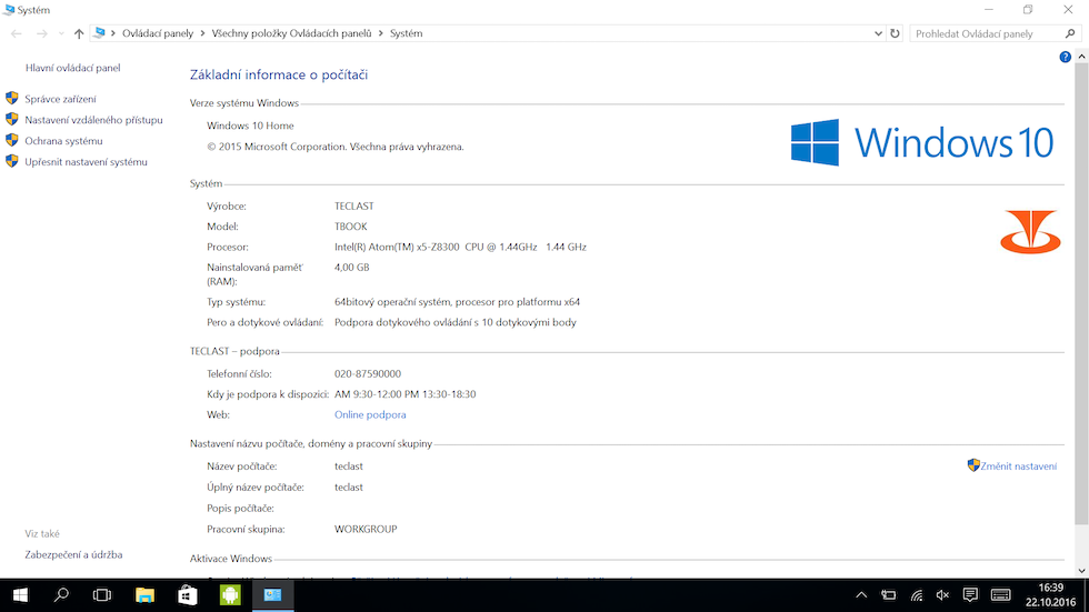 Při testování Teclast Tbook 16 Pro jsem většinu času spoléhal na systém Windows 10 Home. Při prvním spuštění mě překvapilo, že byl systém již nakonfigurovaný. Naštěstí se výrobce nerozhodl do systému předinstalovat žádné své „bonusové“ aplikace, takže máte k dispozici čistý systém.