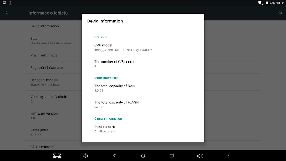 Druhým operačním systémem se stal Android ve verzi 5.1 Lollipop. Je škoda, že výrobce nenasadil novější verzi, protože jak je u většiny méně známých čínských výrobců zvykem, aktualizace se nejspíš nedočkáte.