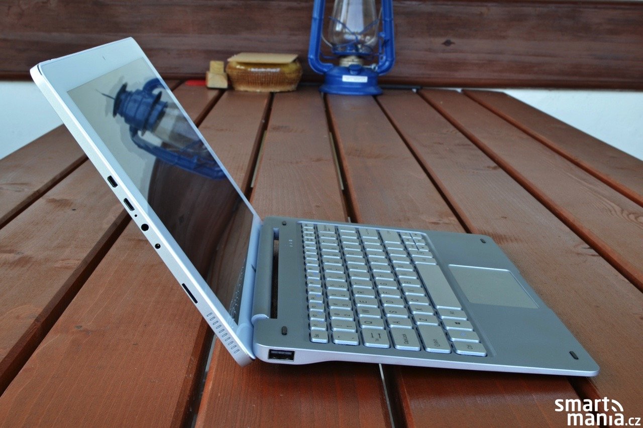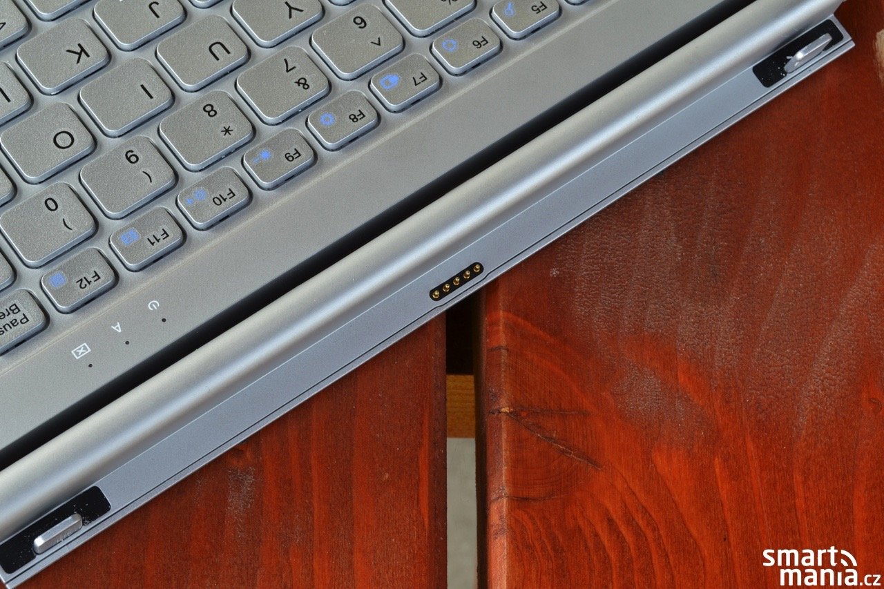 Jednotlivá tlačítka jsou poměrně slušně veliká a líbilo se mi také rozložení kláves, které je v rámci daných rozměrů provedené velmi dobře. Kladně hodnotím také font popisků kláves. V horní části je umístěný kloub s upínacím mechanismem. Teclast zvolil jednoduchý koncept v podobě dvou trnů a silného magnetu, který zajistí pevný spoj tabletu a klávesnice.