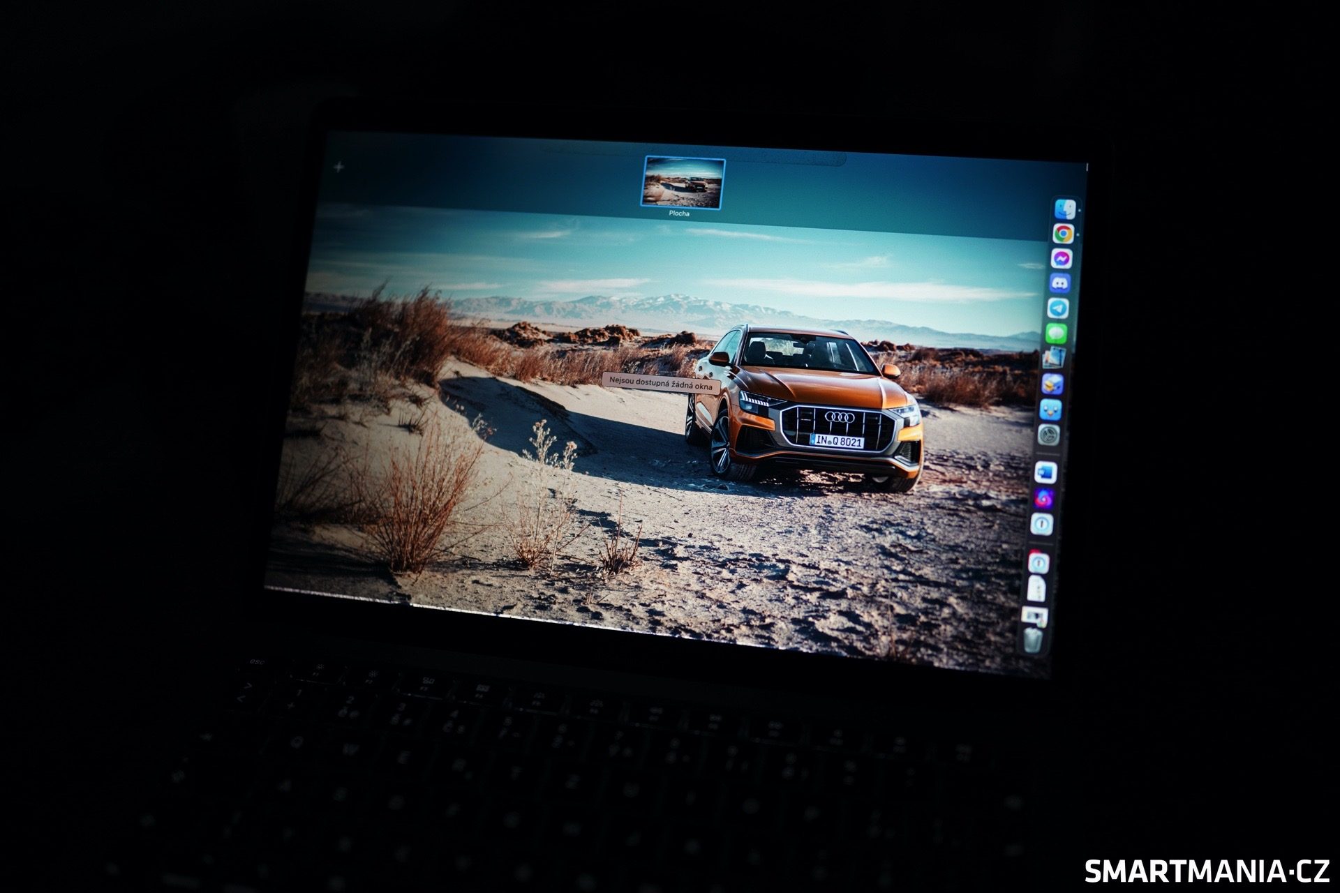 Zatímco u tvrzeného skla bylo nutné počítat i při přímém pohledu s lehce fialovým barevným nádechem, fólie ničím podobným netrpí a barvy jsou věrné. Kvůli přítomnosti privátního filtru však musíte počítat se snížením úrovně jasu o zhruba 20 procent. To by mi až tolik nevadilo, nicméně fólie také trochu zhoršuje celkovou ostrost obrazu. To mi během prvních dnů testování vadilo nejvíce, jelikož hodně pracuji s textem a jsem zvyklý na ostrý obraz. Přiložené fotografie dobře demonstrují snížení jasu, ale zhoršení ostrosti už nikoliv.