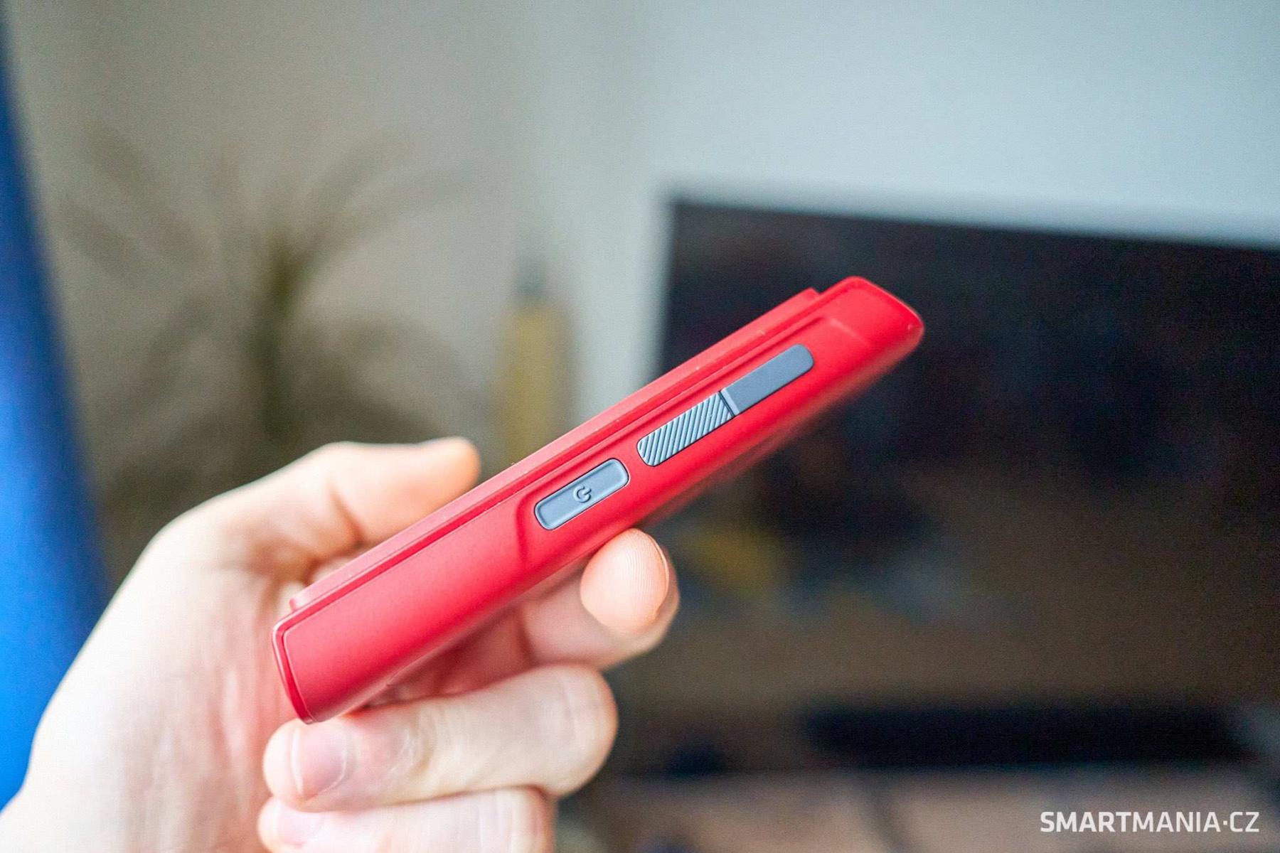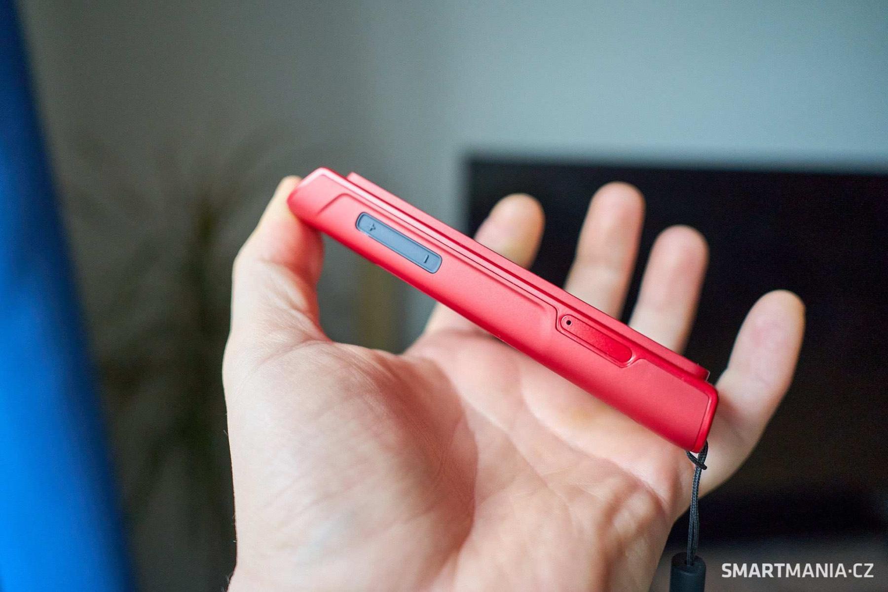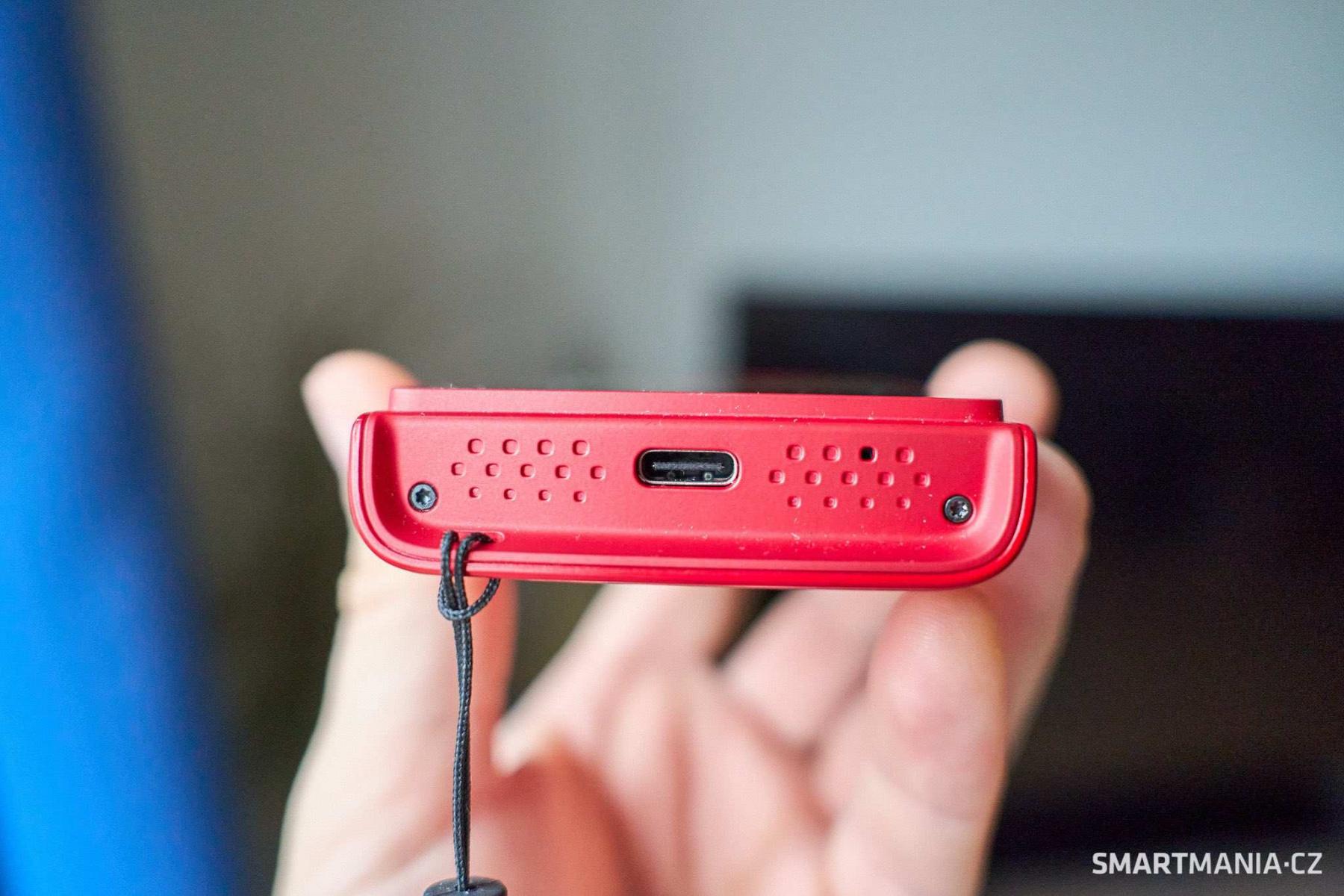 V krabičce kromě nabíjecího USB-C kabelu najdete také praktické silikonové poutko, díky kterému můžete mít kapesní překladač přichycený k zápěstí, takže nemusíte mít obavy, že by vám vypadl či vám ho někdo vytrhnul z ruky. Co potěší, jsou také barevné kombinace – kromě námi testované červené máte na výběr také klasickou černou, decentní tmavě modrou nebo zajímavou fialovou. Na horní hraně je navíc ještě LED proužek, který svítí ve chvíli, kdy jsou aktivní mikrofony.