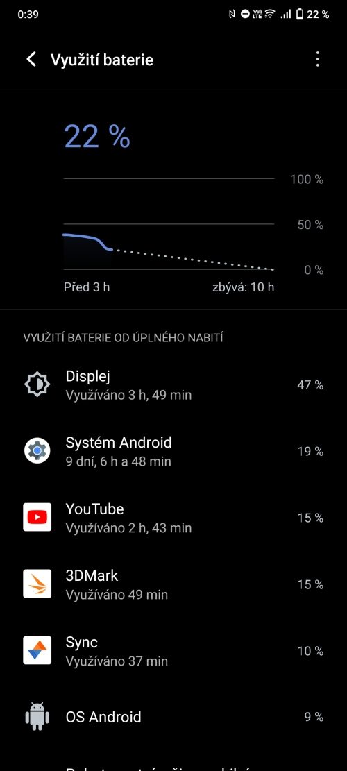 Kapacita baterie činí „pouze“ 4 200 mAh, což na první pohled ukazuje na podprůměrnou výdrž. Samotná kapacita naštěstí tvoří jen jednu z několika proměnných, které mají vliv na skutečné výsledky. A praxe je příjemným překvapením. Druhý den odpoledne mi obvykle zbývalo přes 20 procent baterie. V průměru byl po tuto dobu zapnutý displej čtyři hodiny, nechybělo ani několik desítek minut hraní her či sledování YouTube. Funkci Always-on jsem nechal aktivní, jas displeje a obnovovací frekvence byly nastaveny na automat.