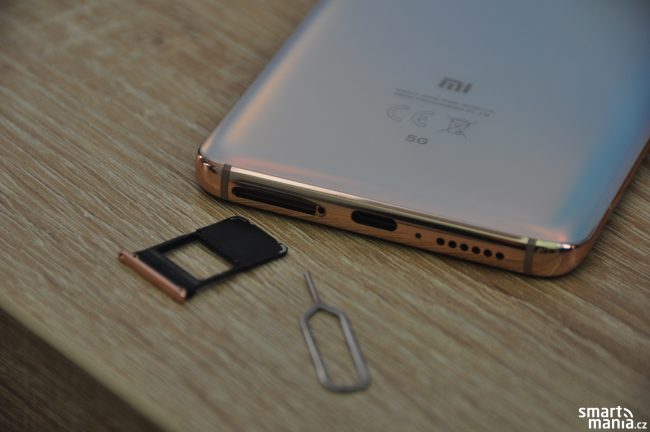 Na spodní straně se nachází USB-C konektor pro nabíjení, první z reproduktorů, dále pak zdířka pro SIM kartu a mikrofon. Levá strana je úplně čistá a zajímavé věci se odehrávají na horní části rámu. Tam se skrývá další z mikrofonů, infraport a také druhý hlasitý reproduktor. Nad displejem je pak samostatné sluchátko pro telefonní hovory. Ano, Mi 10 Pro tak má tři reproduktory.