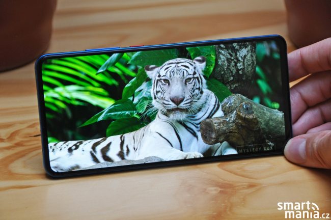 Obrazovka s poměrem stran 19,5:9 má zakulacené rohy a je kryta odolným sklem Gorilla Glass 5. Displej je dobře čitelný na přímém světle, má skvělé pozorovací úhly a dokonce nabízí i funkci HDR, kterou využijete při sledování videí nebo filmů s HDR. Vlastnosti displeje (kontrast, teplotu barev) si můžete libovolně měnit v nastavení.