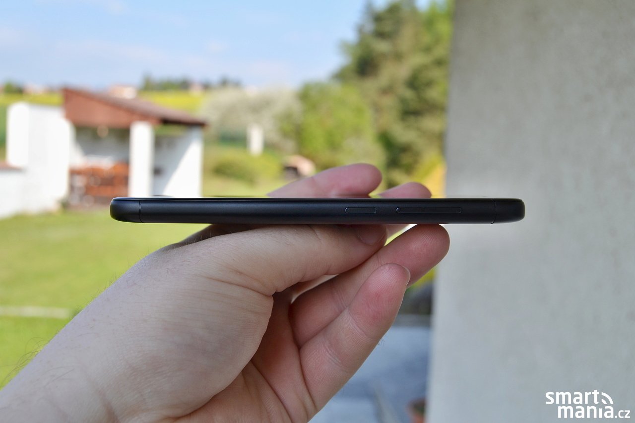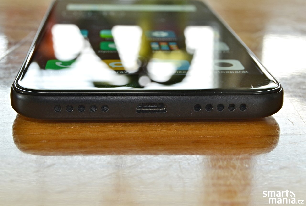 Datový konektor microUSB je umístěn na spodní hraně smartphonu. Je škoda, že novinka nedostala do výbavy rovnou novější USB-C, které bychom rozhodně ocenili. Konektor je lemován dvěma mřížkami, reproduktor je však pouze pod pravou z nich. Pravý bok je domovem tlačítka pro spuštění a samozřejmě také kolébky pro ovládání hlasitosti. Na opačné straně těla se nachází slot pro karty nanoSIM a microSIM. MicroSIM můžete navíc nahradit paměťovou kartou formátu microSD s kapacitou až 256 GB.