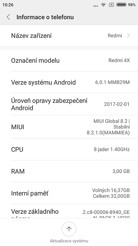 Operační systém je jedním z poznávacích znaků smartphonů Xiaomi. Řeč je pochopitelně o grafické nadstavbě MIUI, která mění základní Android k nepoznání. V případě Redmi 4X byl základem systém Android ve verzi 6.0 Marshmallow a MIUI osmé generace.