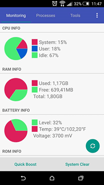 Tento androidí asistent vám prozradí mnoho informací o vašem zařízení. Pokud vás zajímají údaje jako teplota procesoru, jeho využití, napětí, nebo třeba využití paměti RAM a rádi je máte na jednom místě, je tato aplikace přesně pro vás.