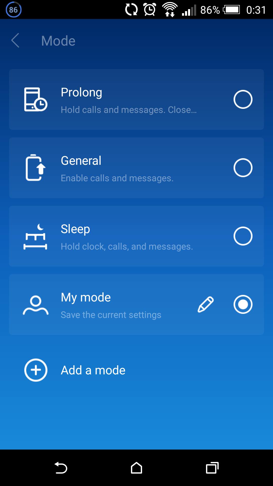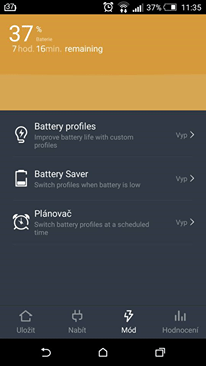 K aplikaci si také můžete doinstalovat spořič baterie, u kterého vývojáři slibují prodloužení výdrže na baterii až o 50 %. Toho je dosaženo s pomocí několika nastavení, jejichž přidaná hodnota však spočívá v tom, že vypnou více funkcí telefonu najednou. Pokud tedy chcete ušetřit energii, můžete buď ručně vypnout WiFi, vibrace, bluetooth, synchronizaci, nastavit si jas na minimum, dobu rozsvícení displeje, anebo udělat vše v jednom jediným dotykem.