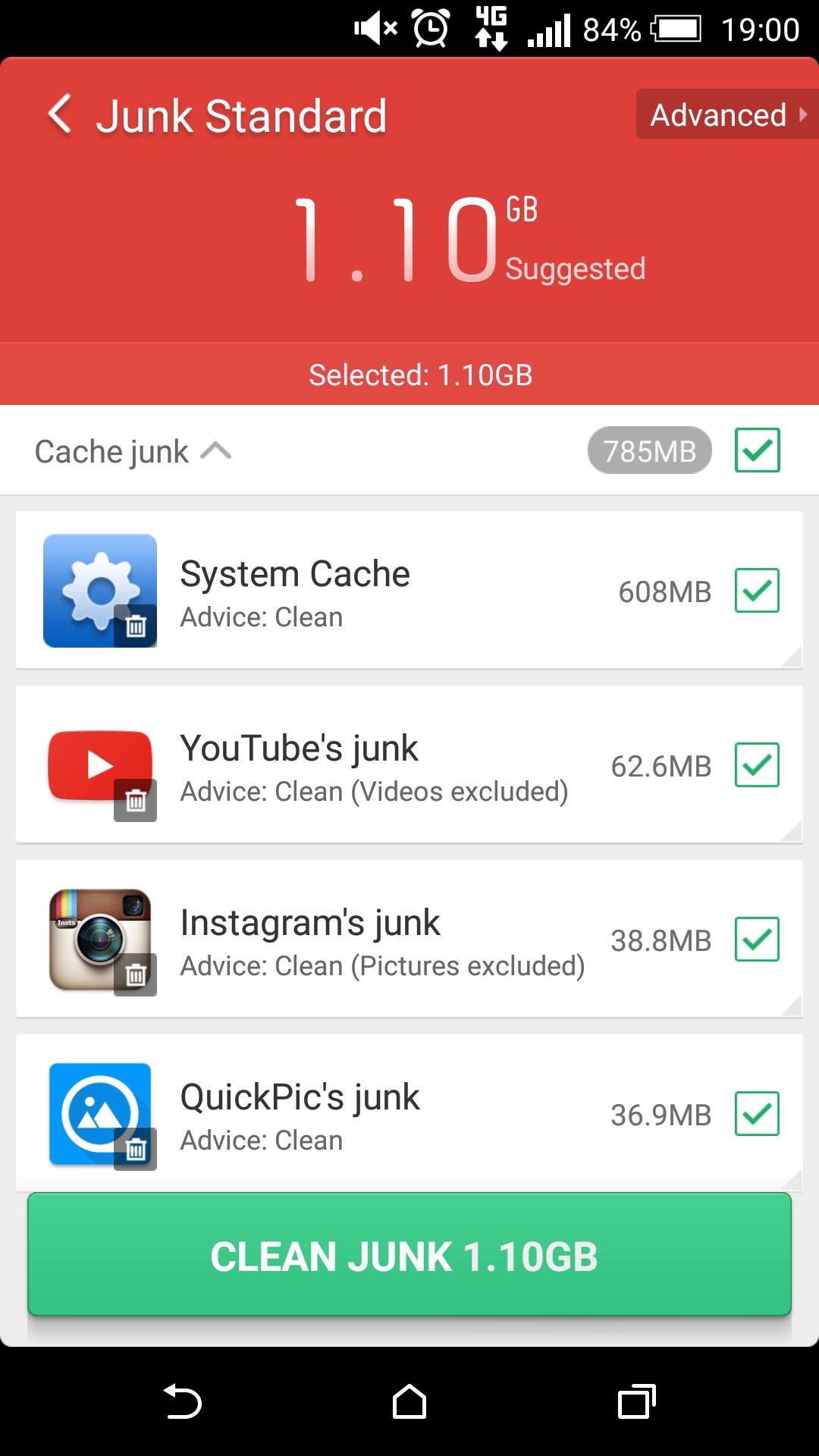 Zavření běžících aplikací je u spousty telefonů možné přímo od výrobce, zde však máte vše v jednom. U mazání zbytečných souborů pak aplikace uvolní data, která nejsou pro běh telefonu nezbytně nutná a odstraní je. Především se jedná o vyčištění mezipaměti, která se však velmi rychle opět zaplní. K rychlému pročištění RAM paměti můžete využít i widget doplněný o spoustu praktických rychlých voleb, které vám mohou chybět v nativní horní liště.