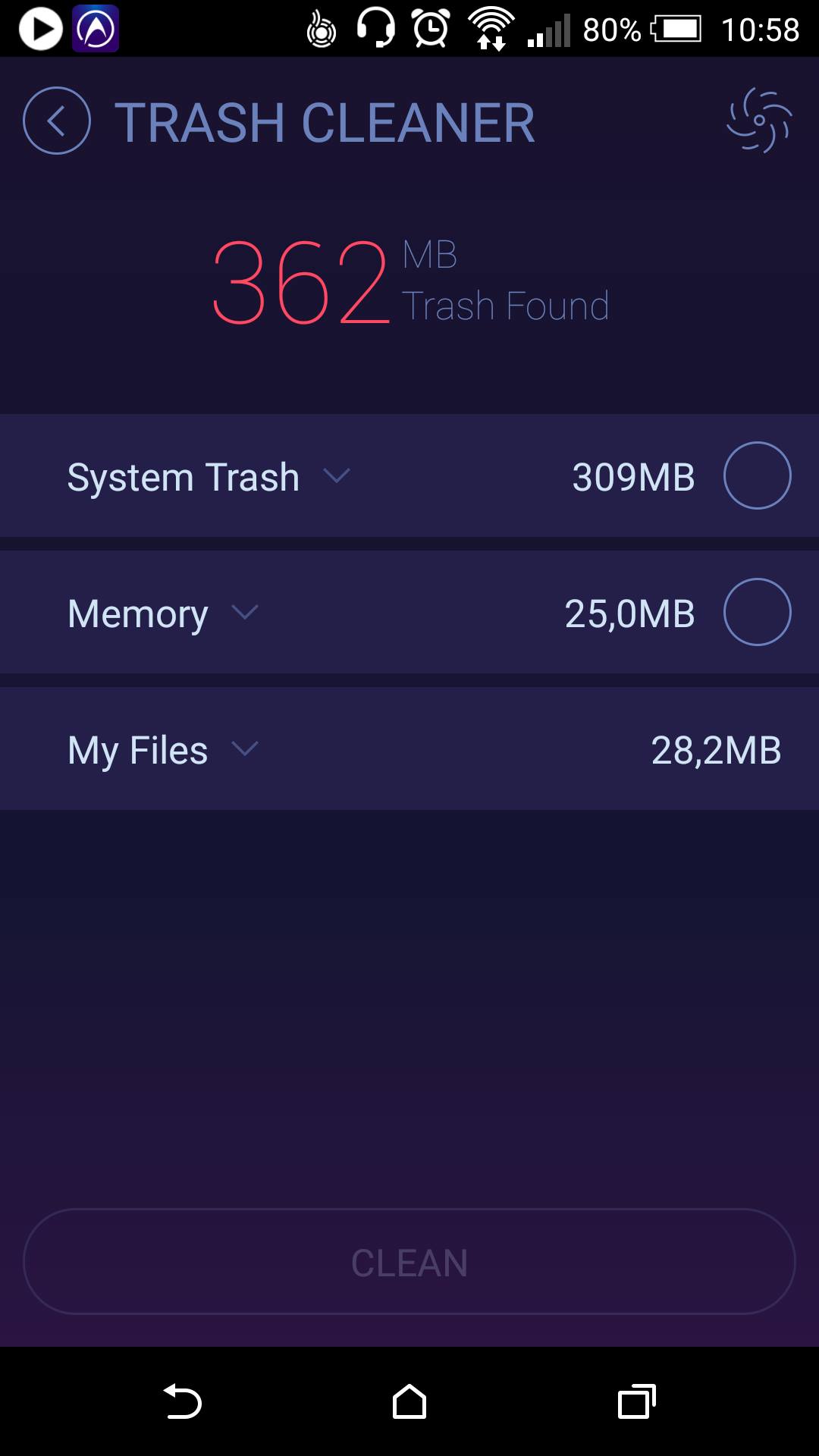 Skrze Clean Master můžete ze svého telefonu vymazat i soubory, které vývojáři vysledovali jako jedny z nejnáročnějších na paměť zařízení. Jedná se například o soubory z kecálka WhatsApp, nebo klasicky soubory uložené v mezipaměti zařízení. Stejně jako DU Speed Booster můžete jakýmsi placebo efektem snížit teplotu svého zařízení, dojde však pouze k ukončení všech aplikací.