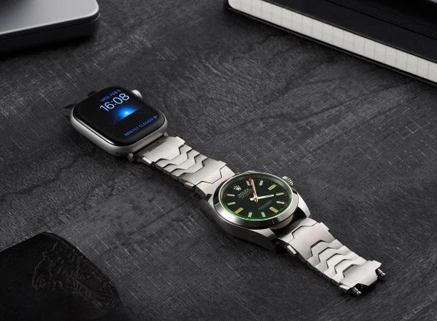 V závislosti na vašich aktuálních potřebách jej můžete nosit buď s klasickými hodinkami, nebo s Apple Watch na zápěstí a druhými hodinkami pod nimi. Společnost uvádí, že je kompatibilní se všemi hodinkami Apple Watch a také s jakýmikoli tradičními kovovými hodinkami s šířkou uchycení 20 mm nebo 22 mm. Patří sem kupříkladu značky Rolex, Tag Heuer, Tudor, Omega a Zenith, nicméně i jiné značky mají ve svém portfoliu hodinky s roztečí 20 a 22 milimetrů, která je vcelku rozšířená, tudíž kompatibilních modelů jsou potenciálně tisíce.