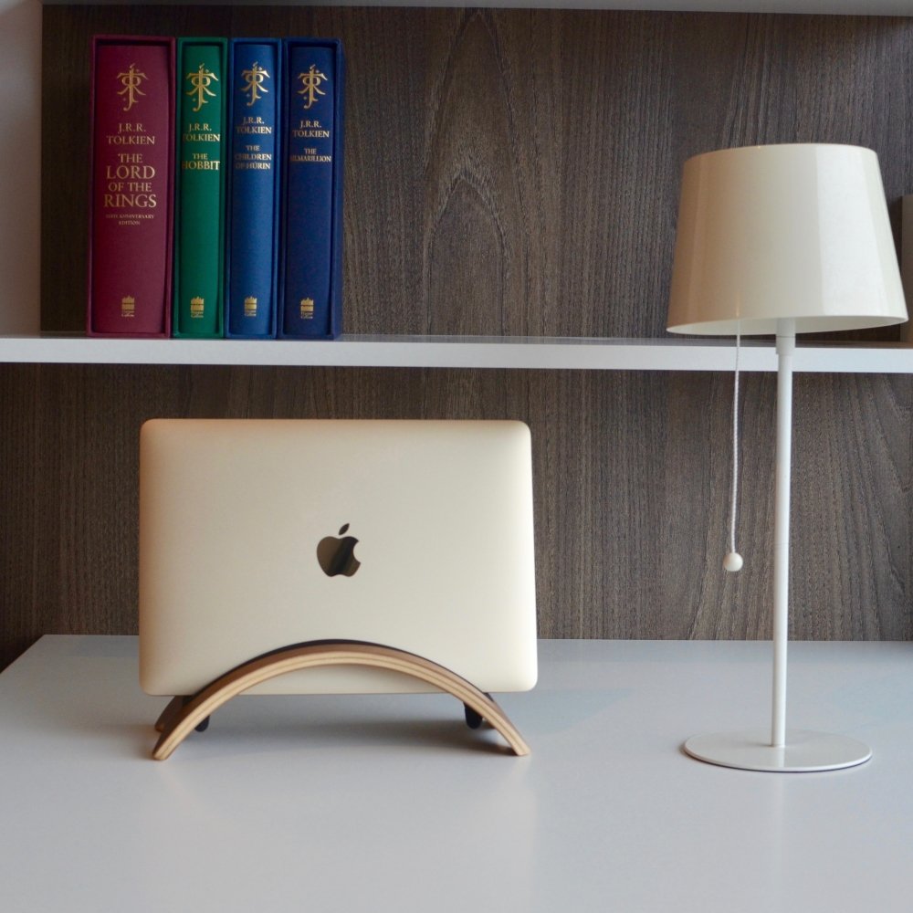 Výrobce nabízí také speciální dřevěné stojánky pro MacBooky (použít je lze i pro jiné notebooky obdobných rozměrů), a i v tomto případě můžete ušetřit místo na pracovním stole a zároveň dodat pořádek uspořádání věcí. Stojánky pro MacBooky jsou také dostupné v několika barevných variantách a opět je zakoupíte na InnocentStore.cz. Ani v tomto případě ale cena není zrovna lidová a připravit si budete muset 1 350 Kč.