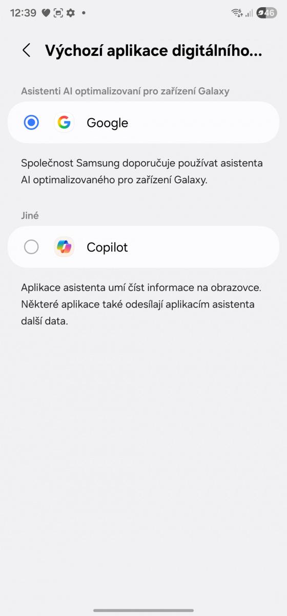 V One UI 8 si také lze nastavit na dlouhý stisk zamykacího tlačítka libovolného AI asistenta. Jako výchozí je zvolena služba Google Gemini, pokud se ale více „kamarádíte“ s ChatGPT, Copilot nebo Perplexity, je možné jednoduše provést v nastavení výměnu.