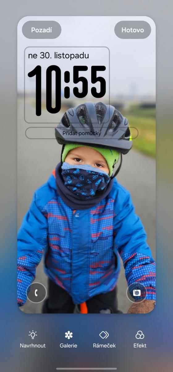 Na zamykací obrazovce lze vybranou fotografii doplnit o další prvky, mezi kterými vynikají dynamické hodiny – velikost jednotlivých číslic se u nich dokáže plynule přizpůsobit použité tapetě, takže nezakrývají například obličeje lidí nebo obrázky zvířat.
