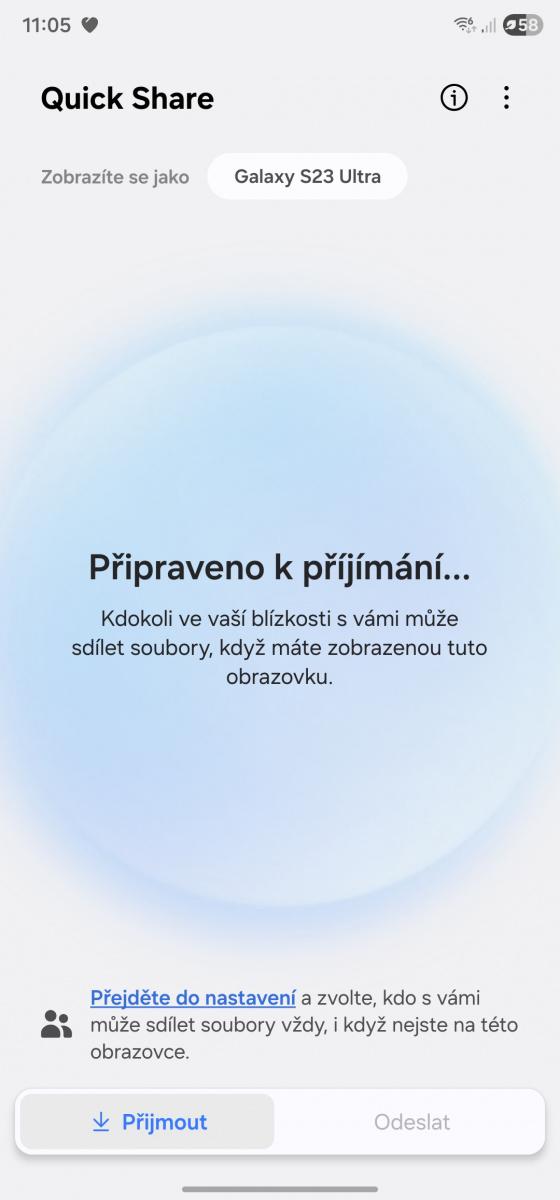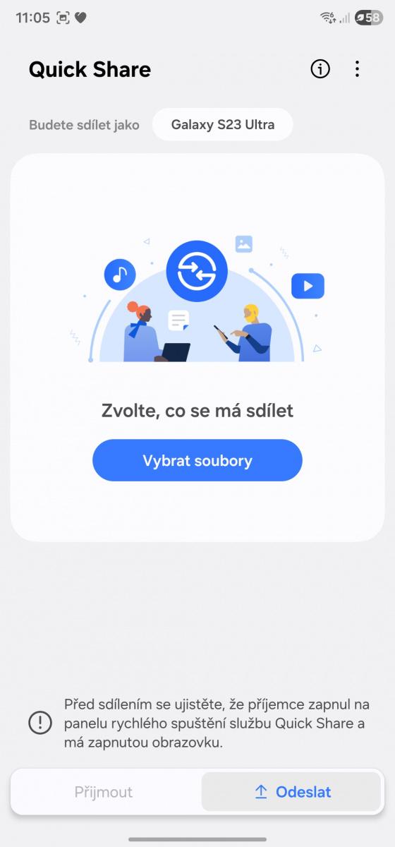 S One UI 8 je snadnější a příjemnější odesílání a přijímání souborů skrze funkci Quick Share, která získala přehlednější podobu s oddělenými panely pro příjímání a odesílání souborů.