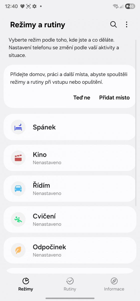Pokud si rádi vypomáháte automatizací činností, oceníte novinky v aplikaci Rutiny. Samsung například nabízí předpřipravené rutiny, které lze použít jako šablony. Stačí si vybrat tedy správnou rutinu odehrávající se v konkrétním čase nebo na konkrétním místě a upravit si ji k obrazu svému – například automatické zapnutí režimu nerušit při příjezdu do práce.