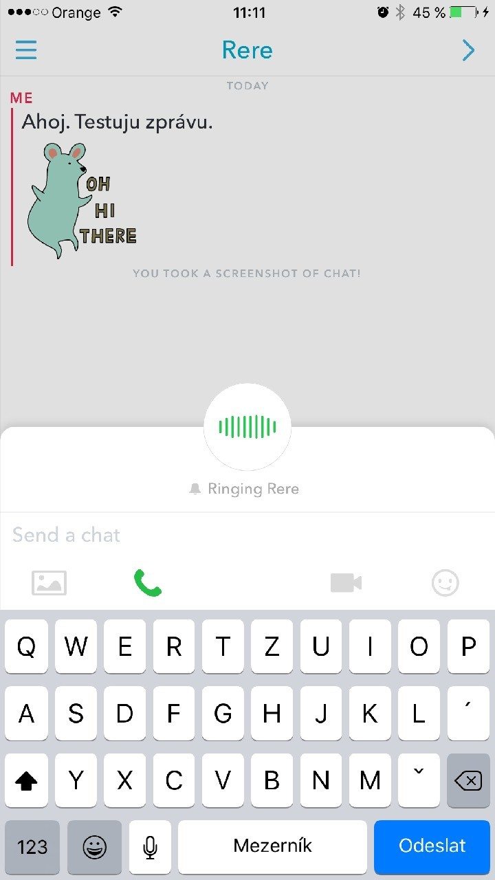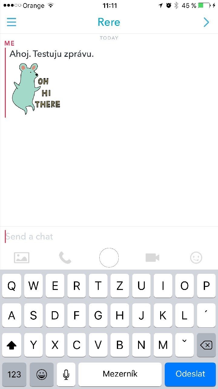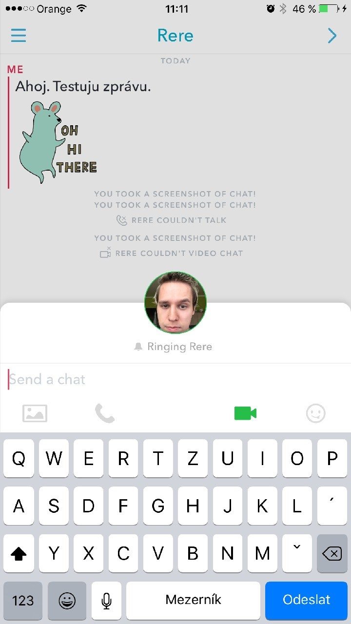 Nejdůležitějším místem je však chat, ve kterém můžete kromě posílání zpráv, obrázků a smajlíků i uskutečňovat hovory a videohovory. Případně lze, stejně jako v iMessages, zanechat dotyčnému hlasovou zprávu, kterou si může ex post poslechnout. Aby to nebylo tak jednoduché, chat můžete s vaším přítelem vyvolat dvěma způsoby, a to buď posunem jeho jména do pravé strany, anebo dvojitým kliknutím, kdy mu můžete okamžitě odeslat zprávu nebo video. Nic víc, nic míň. Alespoň jedna sekce se zdá být v rámci možností Snapchatu jednoduchá.