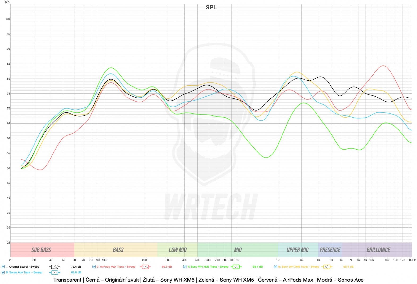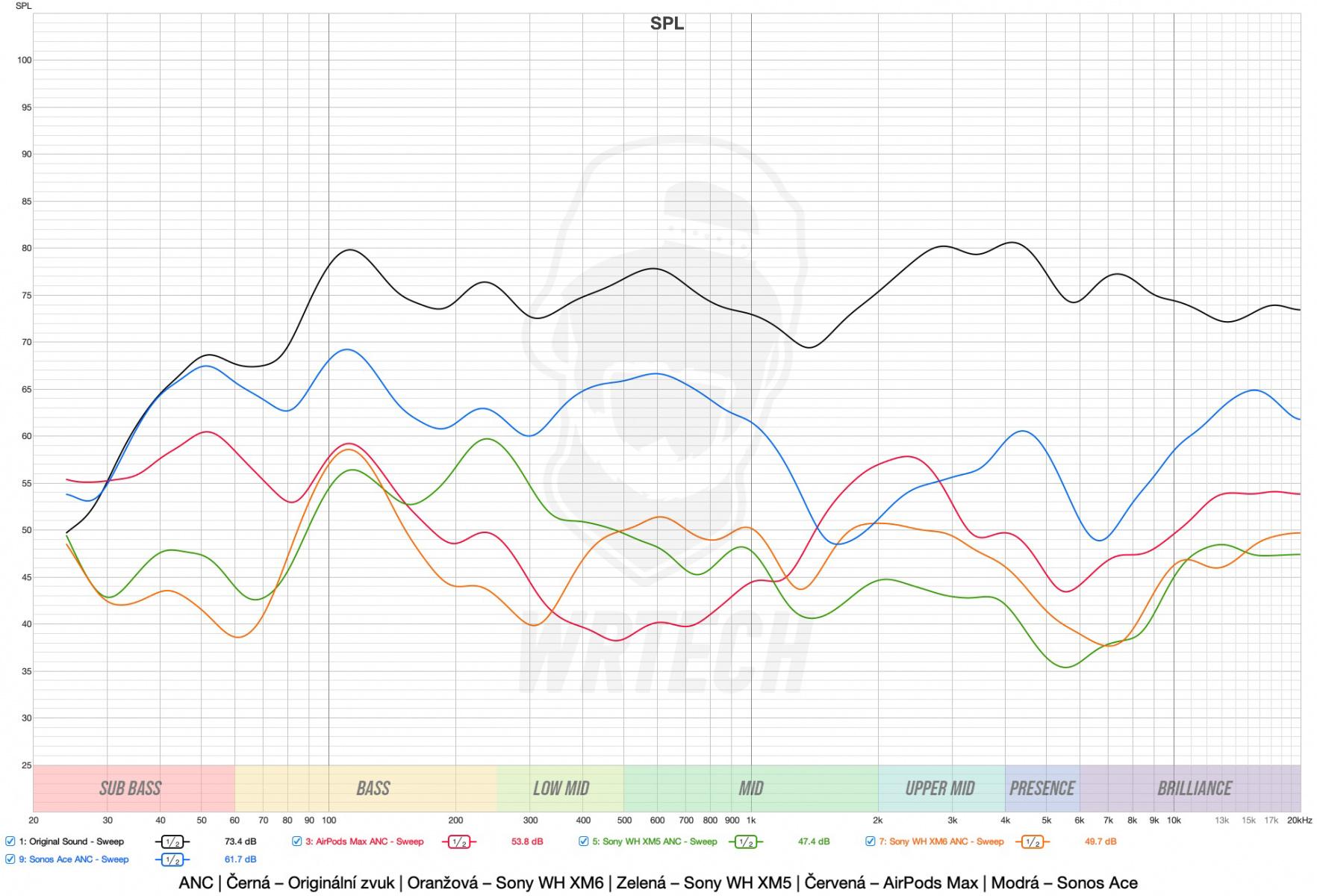 Ve spolupráci s Vojtou Dalekorejem (Wrtech) vám přinášíme porovnání frekvenční charakteristiky, ANC a transparentního režimu s předchozí generací sluchátek (WH-1000XM5), AirPods Max a Sonos Ace.