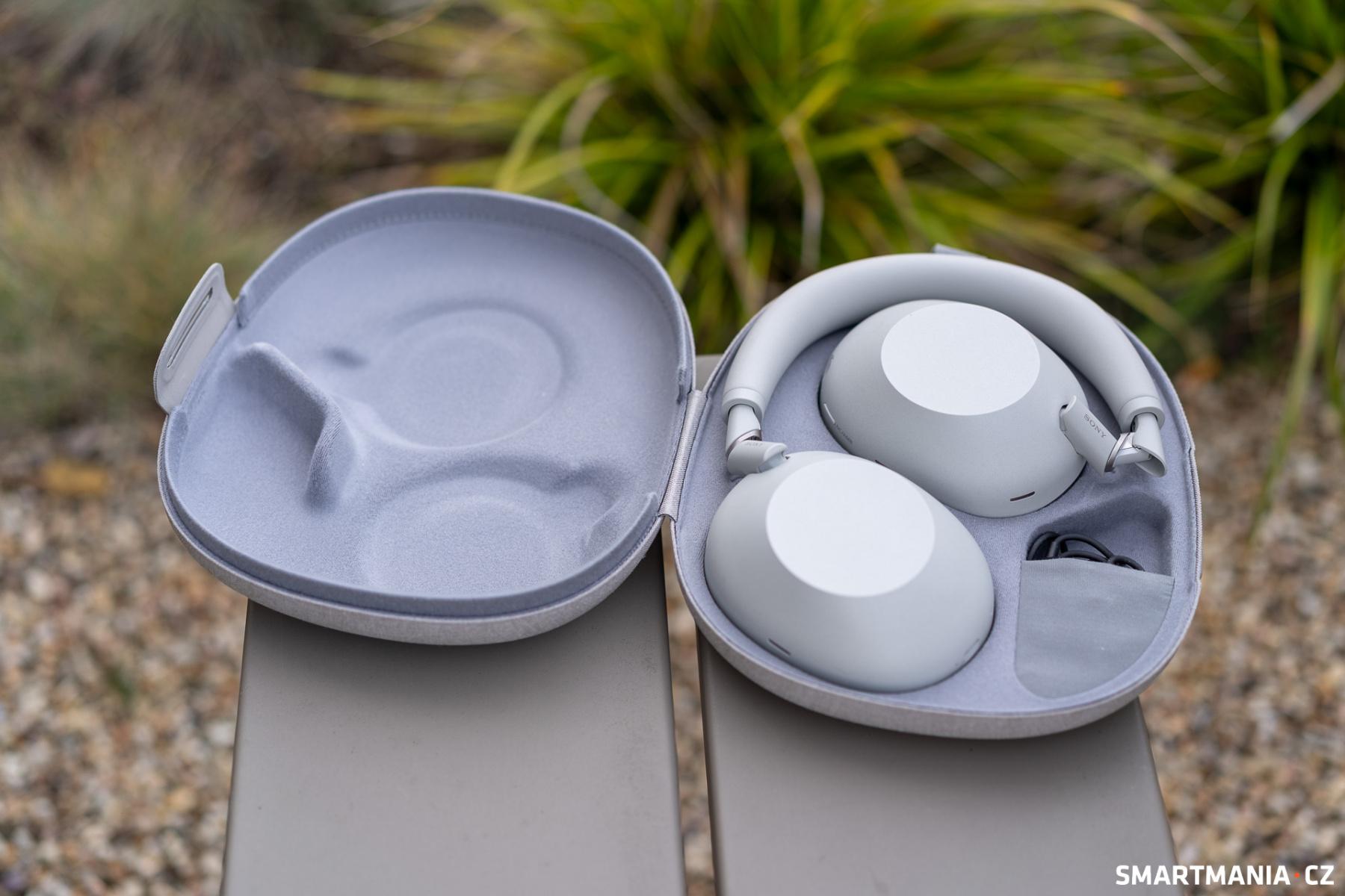 Co se týče nabídky barevných variant, můžete volit mezi černou, modrou a stříbrnou. Poslední zmíněnou variantu jsem také testoval a shodou okolností mi osobně přijde i nejhezčí. Ve stejném barevném provedení vám ke sluchátkům dorazí také ochranný obal, který je nyní na magnetické zapínání, což značně ulehčí manipulaci. Pouzdro je relativně pevné ale stále poměrně lehké, takže pro cestování naprostý ideál. Uvnitř je malá kapsa, v které najdete nabíjecí kabel a audio 3,5mm jack kabel pro „drátový“ poslech. Pamatuji se, že u předchozí generace WH-1000XM5 jsem vytýkal větší pouzdro a taktéž zapínání obalu na zip není pro manipulaci úplně ideální. V tomto případě se Sony poučilo a pouzdro i s mechanizmem skládání sluchátek dotáhlo k dokonalosti.