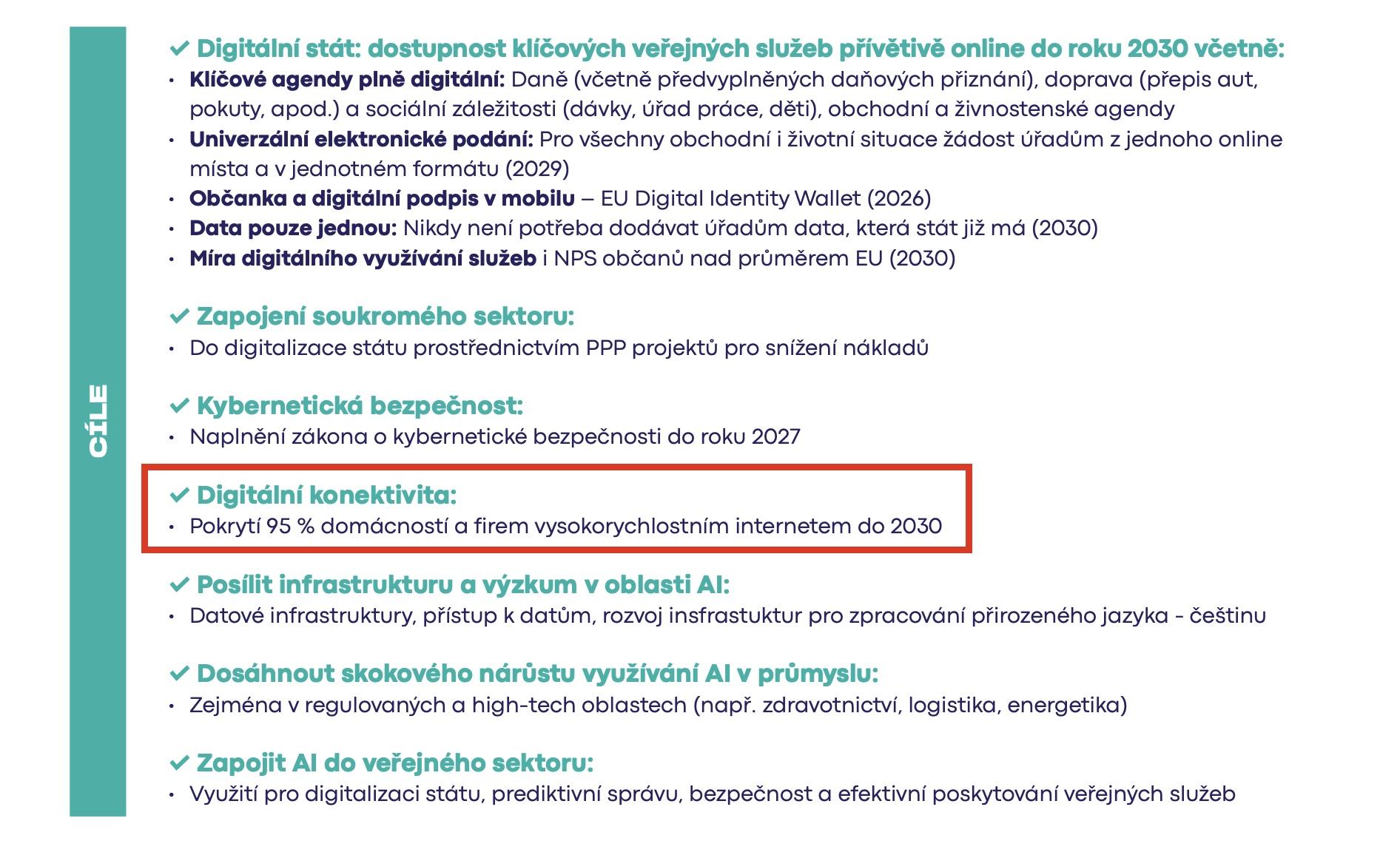 - Mimo jiné slibuje vysokorychlostní internet pro 95 % domácností do roku 2030