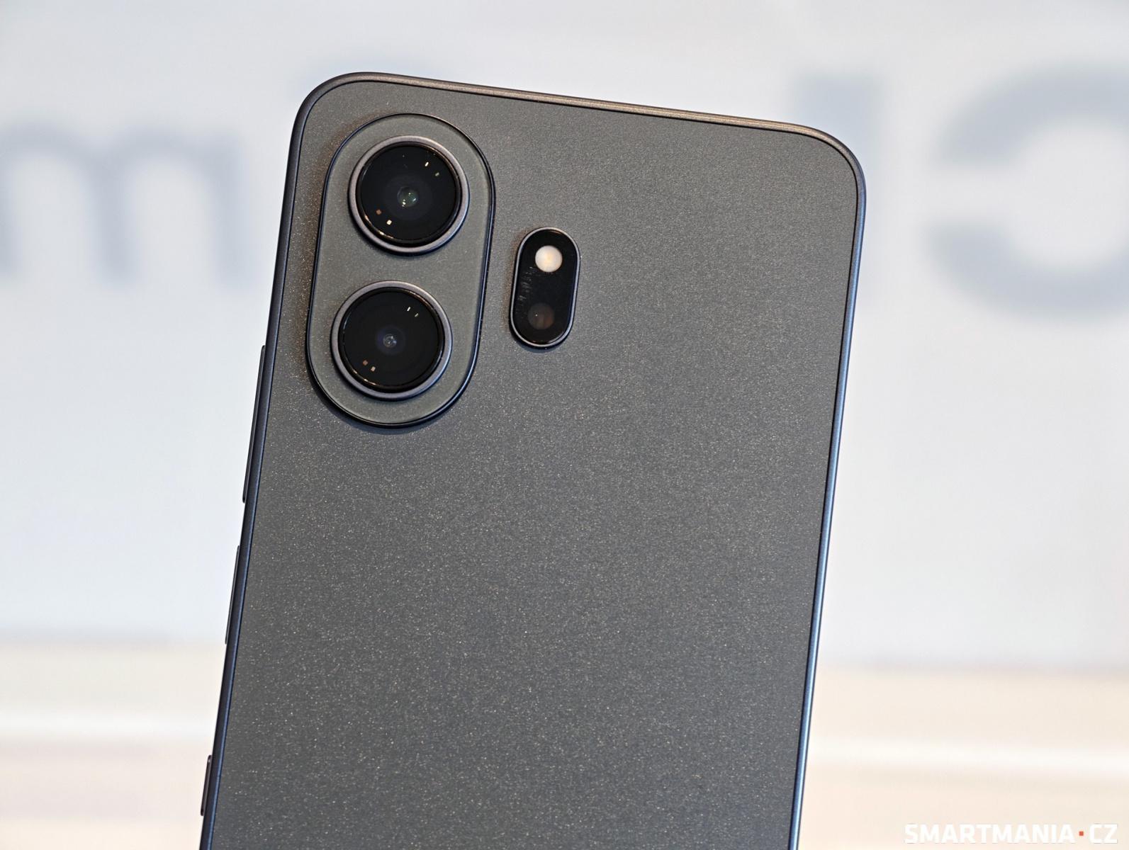 Telefon má plochý rámeček, na zádech se nachází jednoduchý modul s dvojicí objektivů fotoaparátu a nic extra zajímavého na něm vlastně není. Určitou míru elegance ale tomuto minimalistickému ztvárnění nelze upřít. Konstrukce každopádně nabízí zvýšenou odolnost dle krytí IP68, což potěší a na pravém boku telefonu se nachází kouzelné tlačítko.