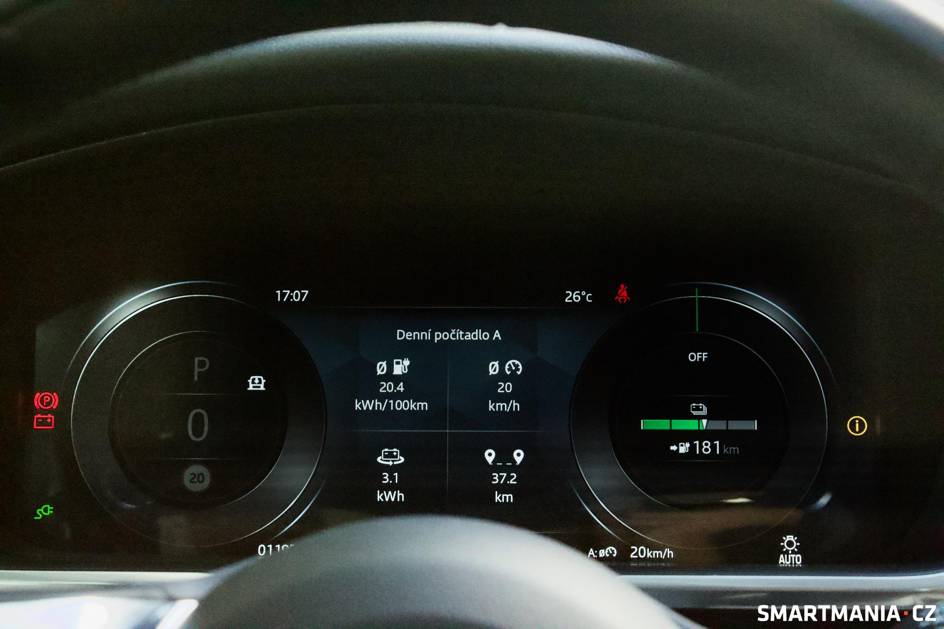 Pokud se budete držet při zemi, dokážete ujet zhruba 420 kilometrů na jedno nabití. To v mém případě znamená, že bych do práce mohl jezdit dva týdny bez nabíjení. Na srdci vás přitom ještě hřeje skutečnost, že auto počítá zrekuperované kWh. Většinou je jich podle vaší šikovnosti kolem 10 kWh každých 100 kilometrů.
